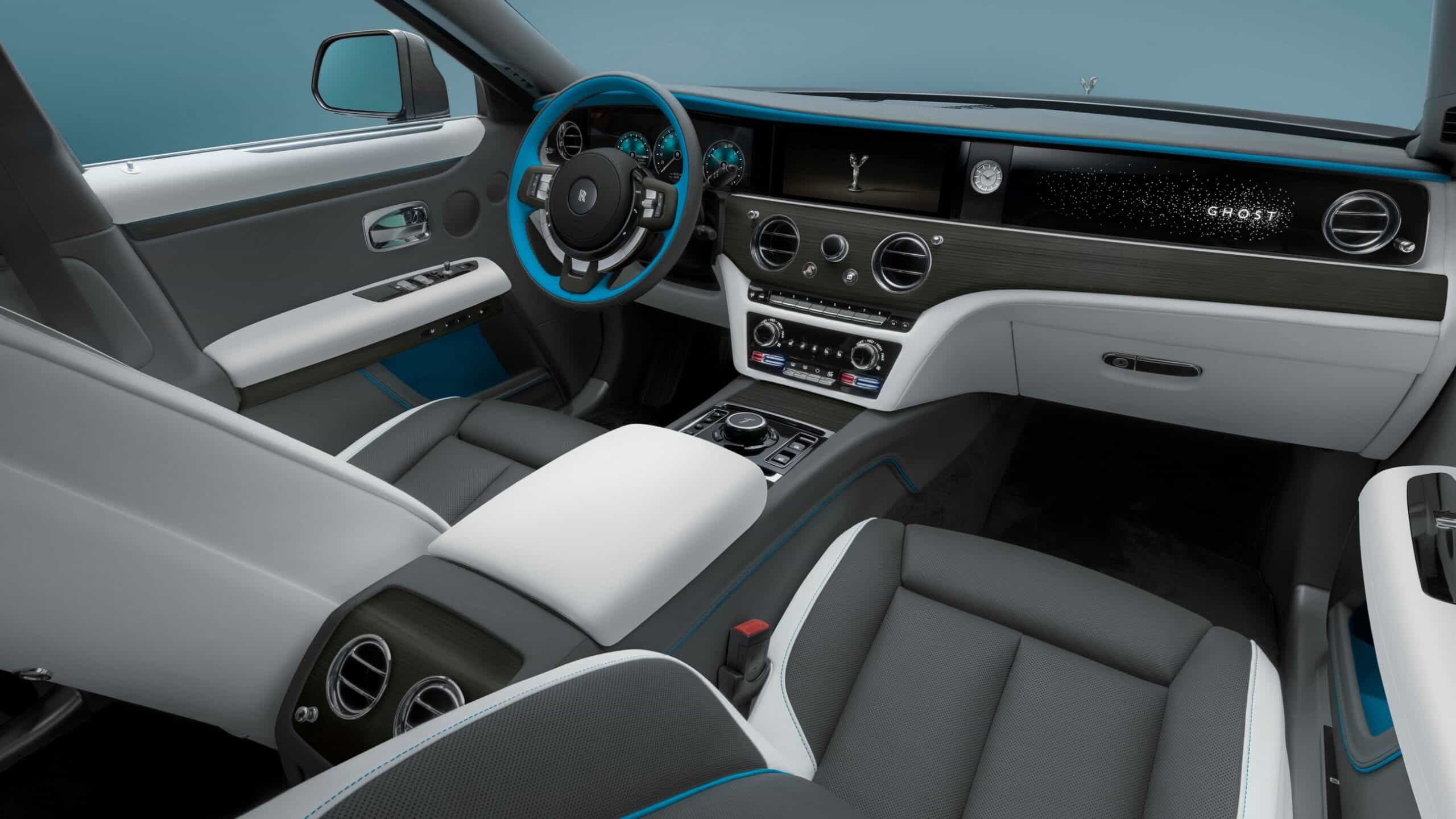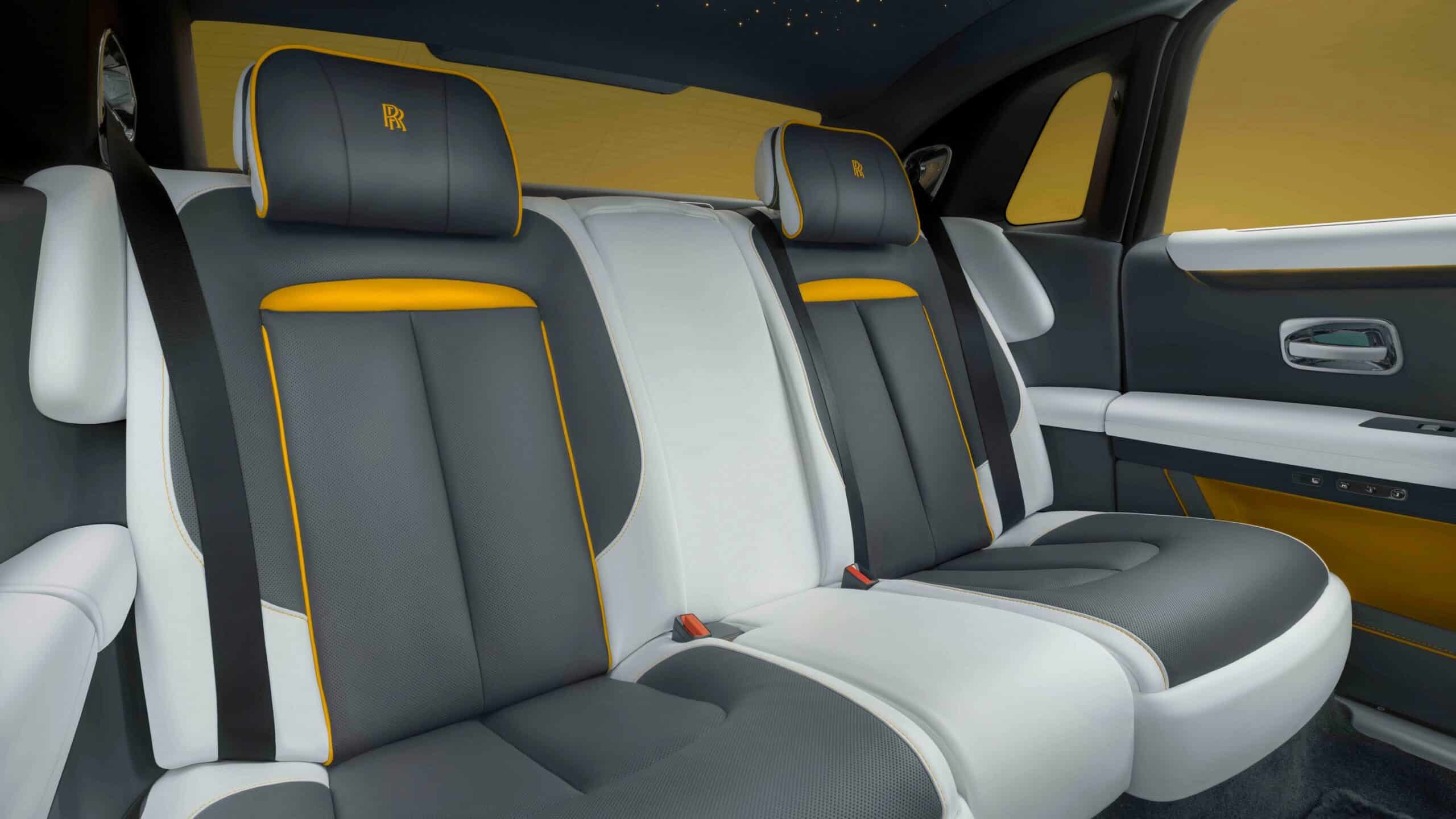 These contrasting details are noticeable on the coachline, brake calipers, and on the lower bumper inserts. As opposed to a regular Ghost with a stainless-steel mirror-polished grille, the Prism has a more subdued look with a smoked black/gray shade called “Burnout.”
