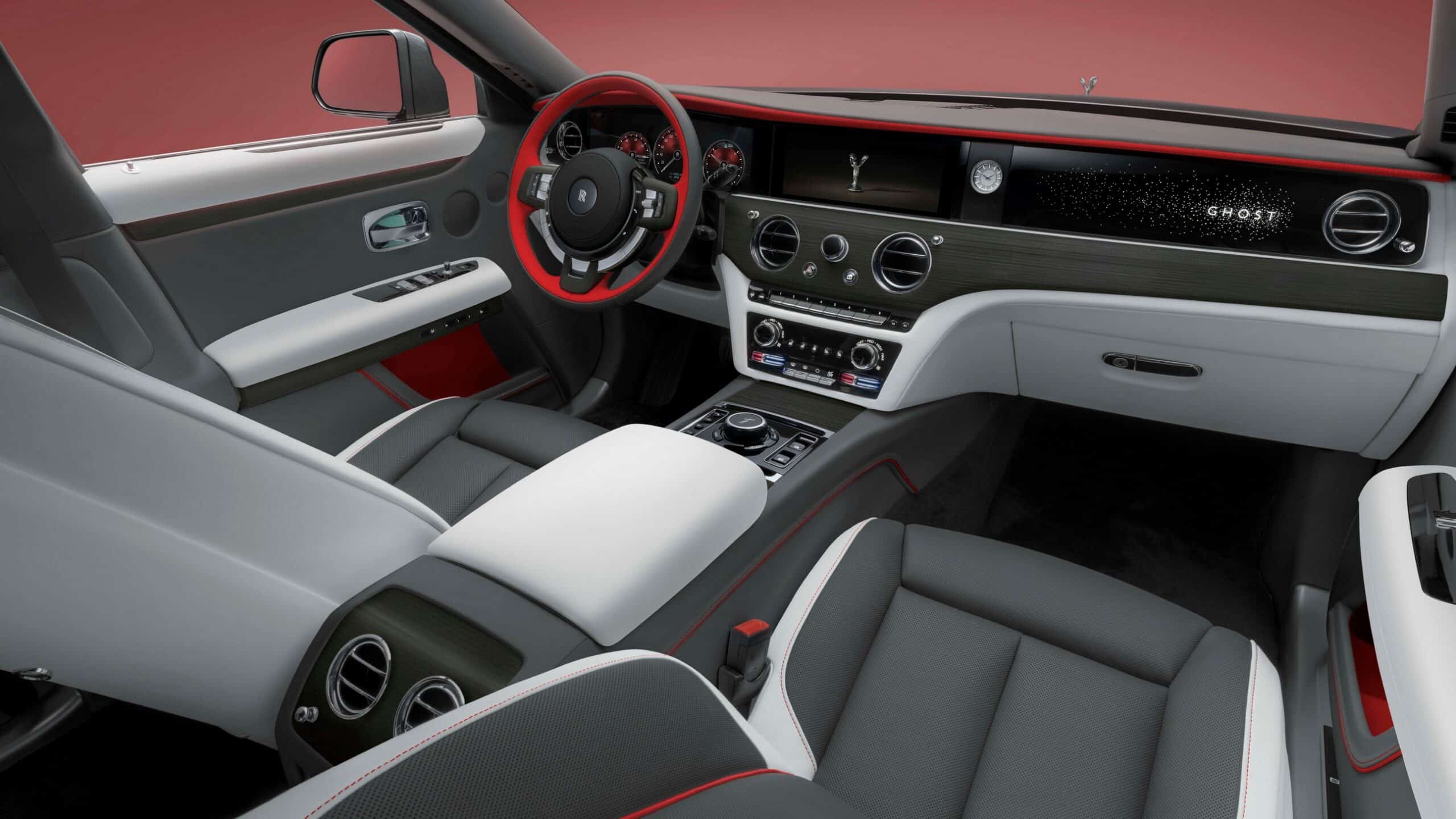 These contrasting details are noticeable on the coachline, brake calipers, and on the lower bumper inserts. As opposed to a regular Ghost with a stainless-steel mirror-polished grille, the Prism has a more subdued look with a smoked black/gray shade called “Burnout.”