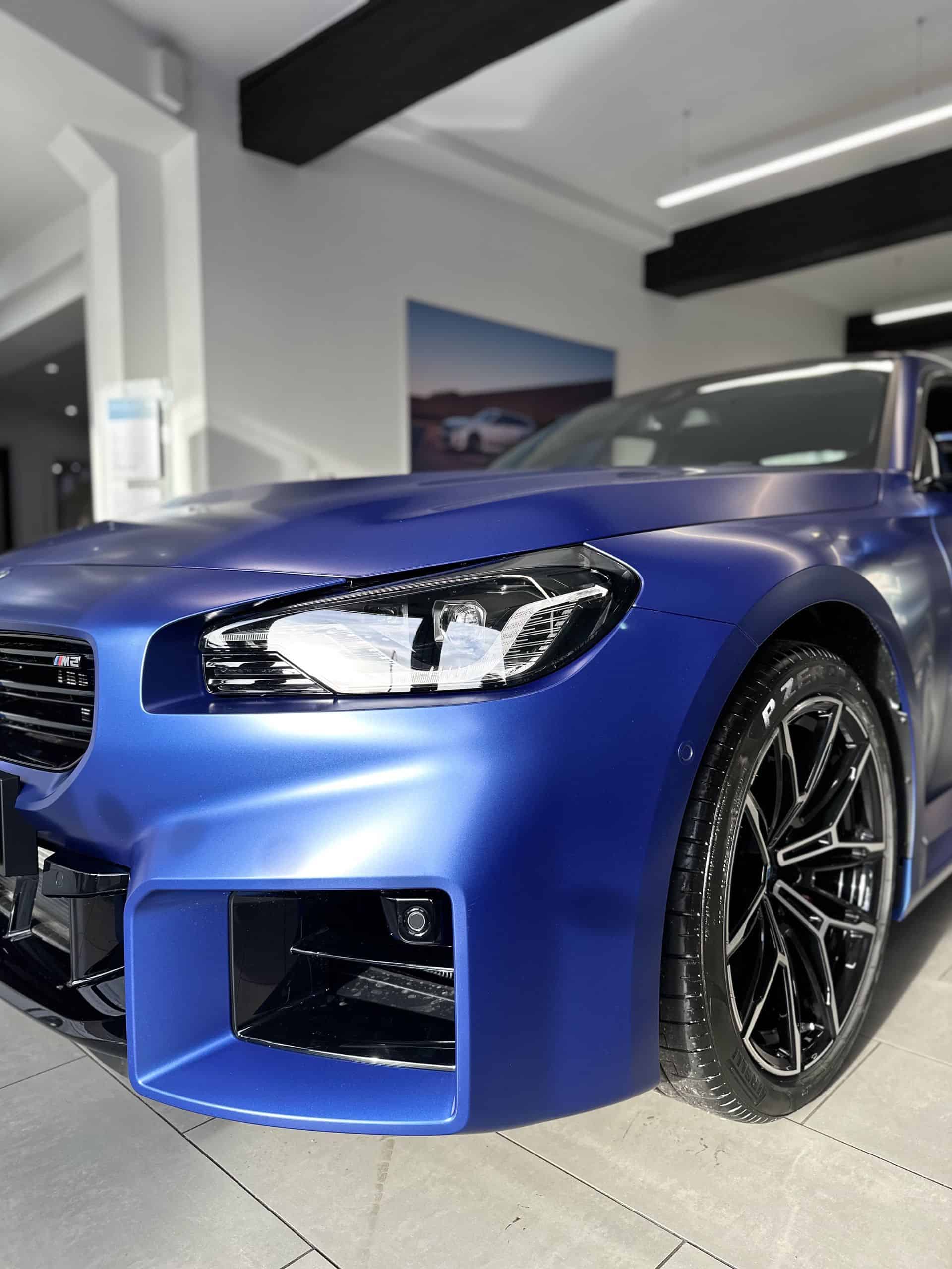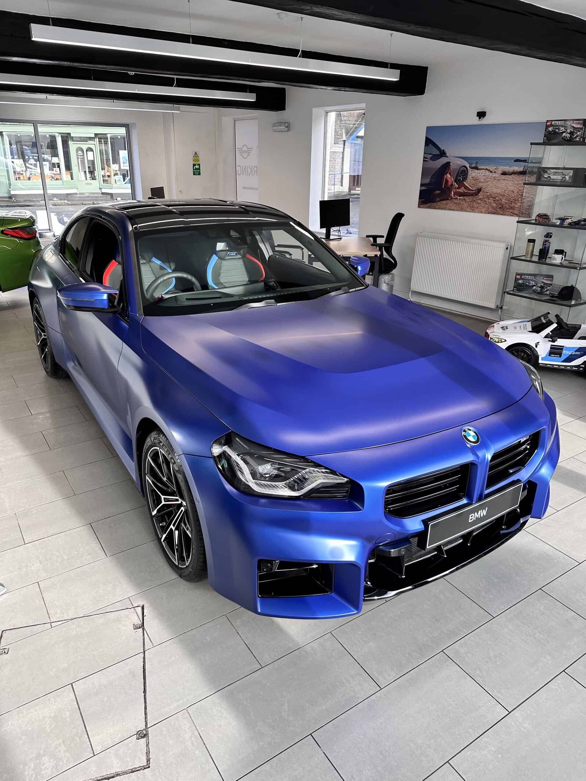 BMW initially offered the M2 with only five colors, none of which came from the Individual catalog. It wasn’t until mid-2023 that a couple of matte paints were introduced: Frozen Pure Grey and Frozen Portimao Blue. Having seen the former earlier this week in real-life shots of a G87, it only makes sense to take a closer look at the latter. This right-hand-drive M2 was photographed in the United Kingdom awaiting delivery for a customer.