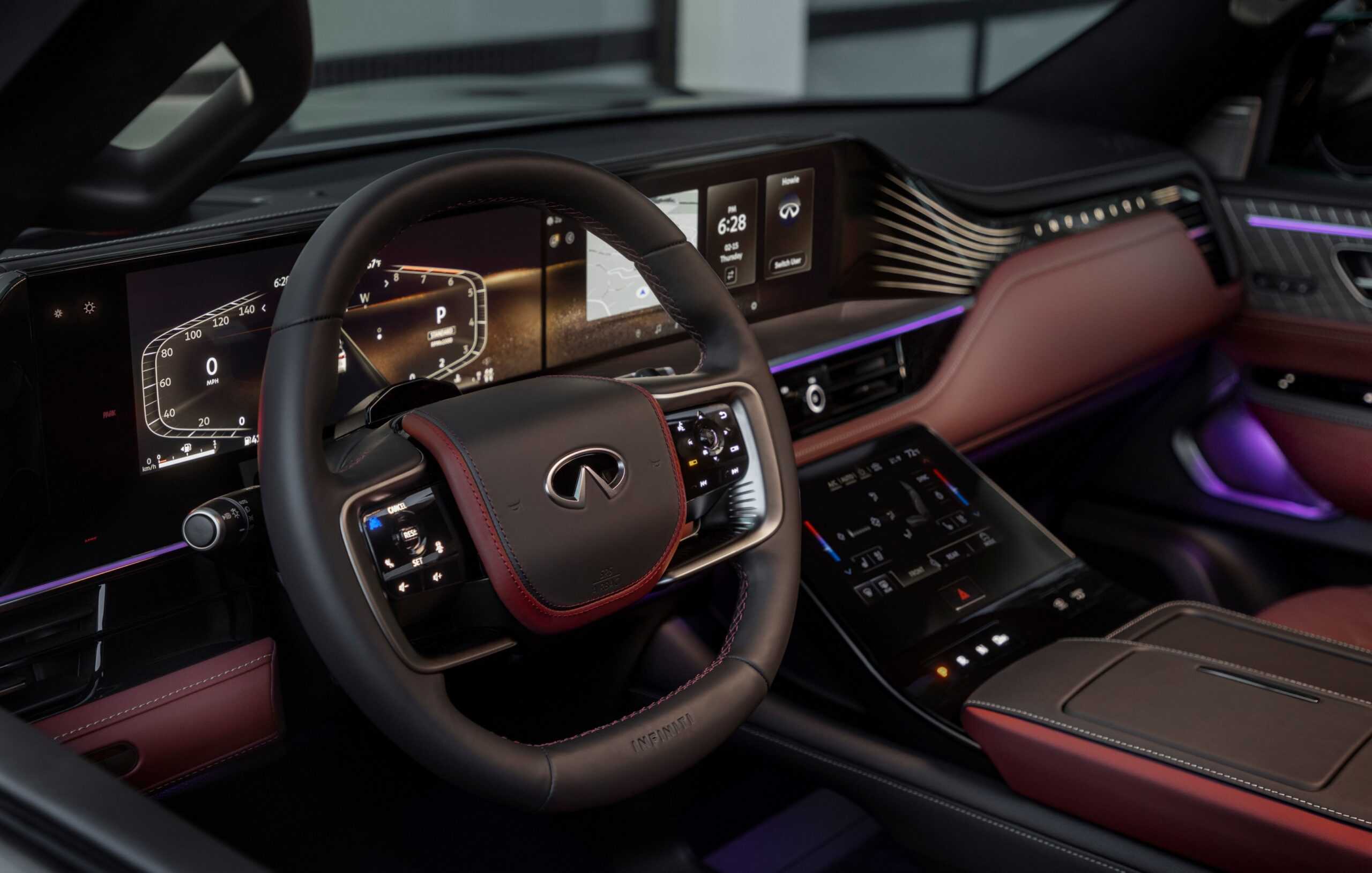 With the QX80 being Infiniti’s flagship vehicle, it naturally comes loaded with high-end goodies. A relevant example is the 24-speaker sound system from Klipsch with 1,200 watts of power, titanium tweeters, and four roof-mounted speakers. There’s also air suspension, 64-color ambient lighting, open-pore ash wood trim with laser-etched metal inlays, and even biometric cooling. The latter refers to a sensor that can detect when a second-row occupant is feeling warm and it automatically sends cool air toward them.