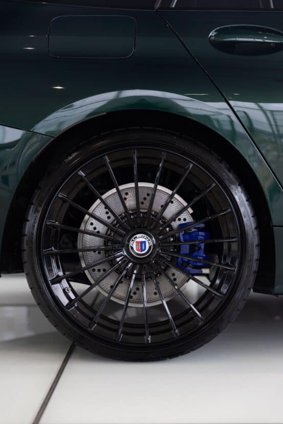 The B3 Touring’s overall design is enhanced by 20-inch ALPINA Classic wjee;s in black, adding to the green and black theme. These weight-optimized, forged wheels are an upscale addition at 3,760 euros, surpassing the cost of the ALPINA Green II metallic paint priced at 1,950 euros. Given these premium features and a starting price of 91,700 euros, it’s unsurprising that the BMW Alpina B3 Touring in question reaches a six-figure price tag.