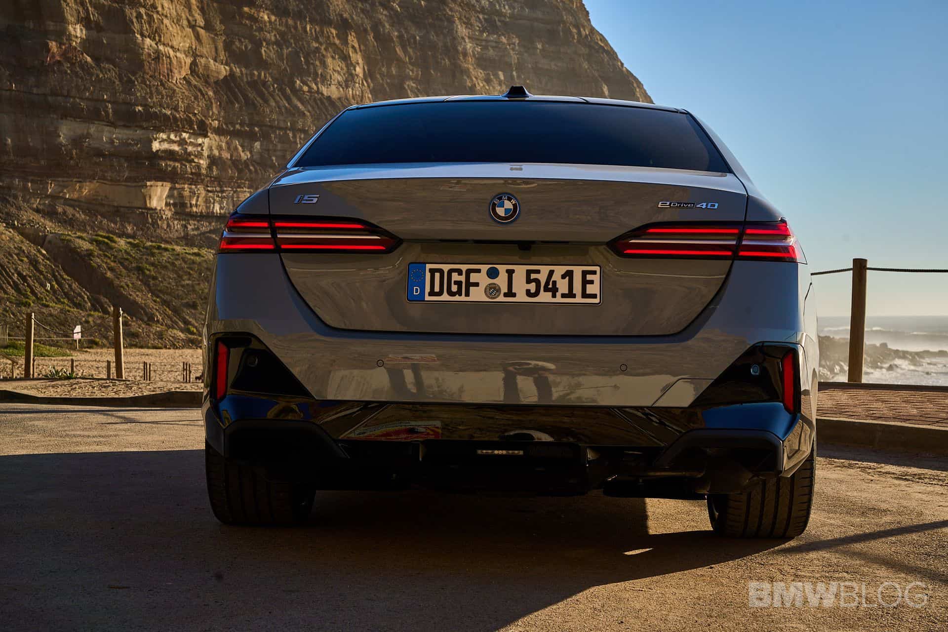 The Spanish journalists at Km77 tested this Brooklyn Grey i5 with its large 21-inch wheels wrapped in 255/35 R21 front and 285/30 R21 rear Continental EcoContact 6Q tires. The 5 Series EV impressed in the slalom test as the driver says the luxury sedan behaved like a smaller, lighter car. The body roll was moderate and the i5’s overall behavior was “almost like a sports car.”