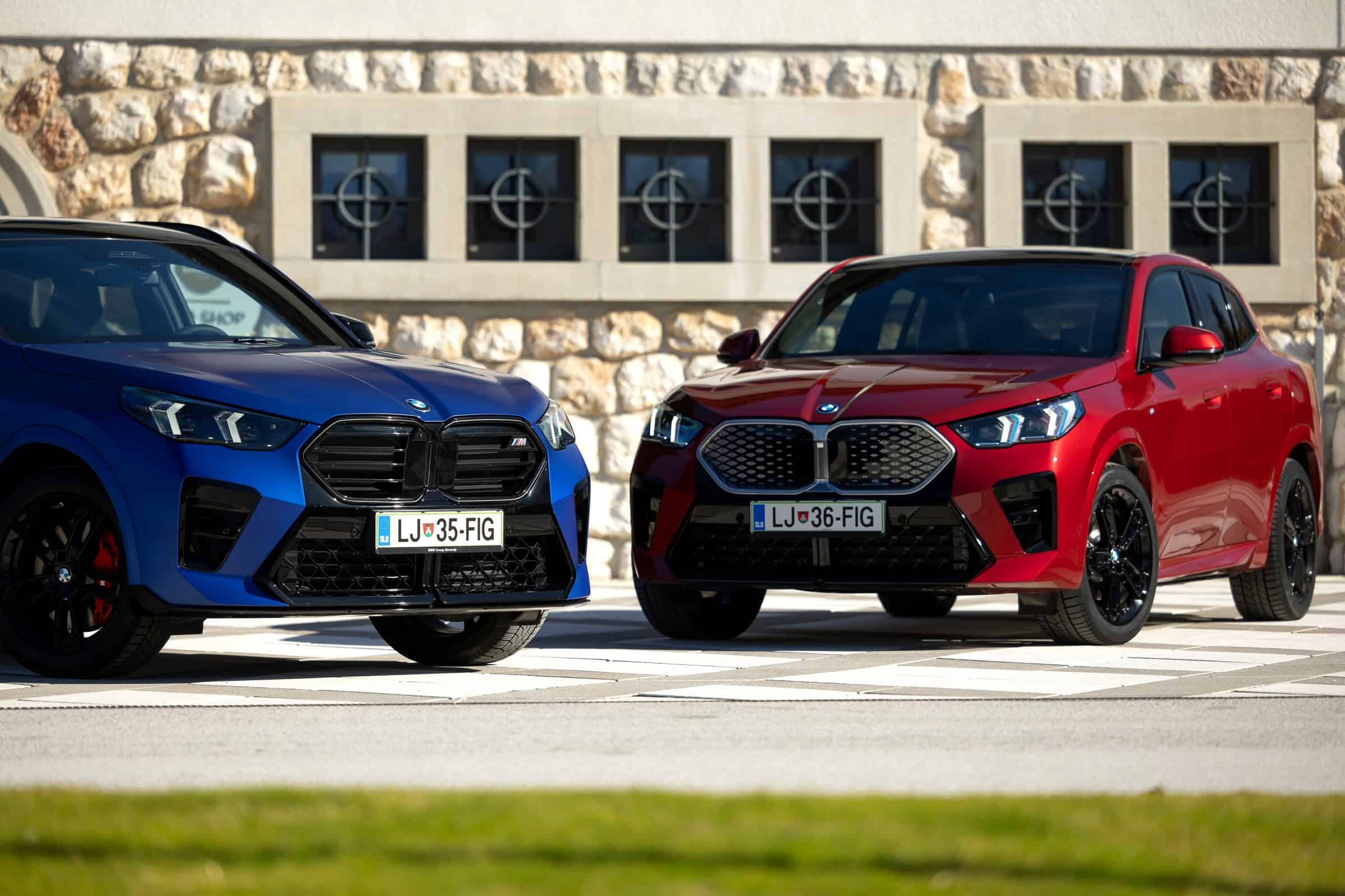 The 2024 BMW X2 M Performance model was presented in Frozen Portimao Blue while the electric variant had the equally eye-catching Fire Red paint. The two crossovers beaten with the coupe stick have unique kidney grille designs that you’ll find on the equivalent X1 M35i and iX2. BMW Slovenia chose to show off the dynamic duo with black wheels but there are plenty of other designs in the classic silver or with a two-tone look.