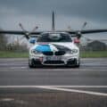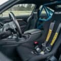 The outside of this F82 M4 Competition features a range of BMW M Performance aerodynamic components, such as carbon fiber rear wing, front splitter and left and right side wings. A specific wrap design gives the M coupe the overall motorsport look. The interior is upgraded with a lightweight BMW M4 roll bar, a rear-seat delete and RECARO Pole Position seats. A missing detail is the absence of an Alcantara steering wheel.
