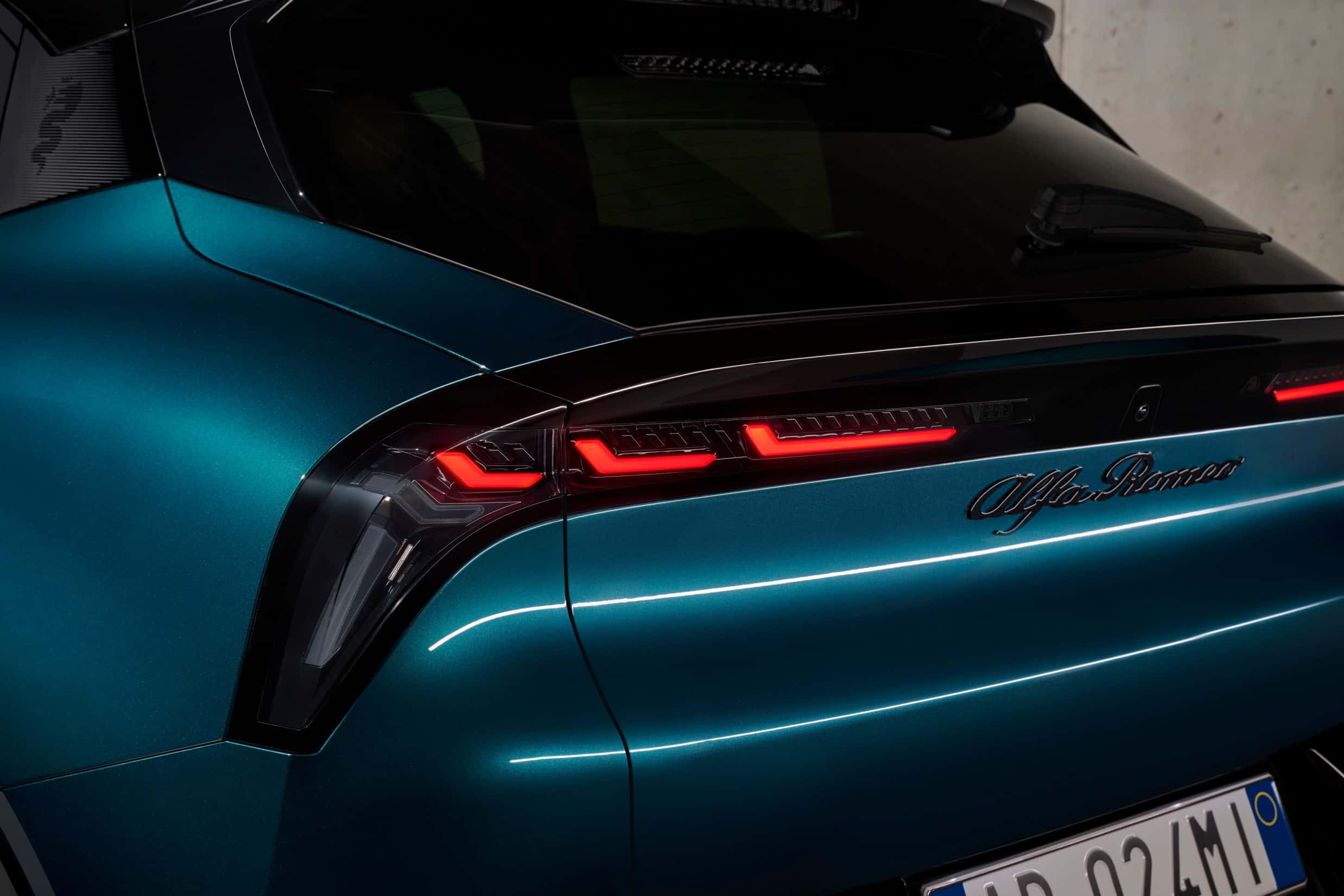 The oversized “scudetto shield” at the front is a nice retro touch and is offered in two distinct designs. This iconic Alfa Romeo logo is flanked by sharp-looking matrix LED headlights with a familiar three-point layout harkening back to legendary models such as the SZ or the 159. The iconic “Biscione” (grass snake) motif also adorns the rear pillars where it discreetly blends in with the bodywork.