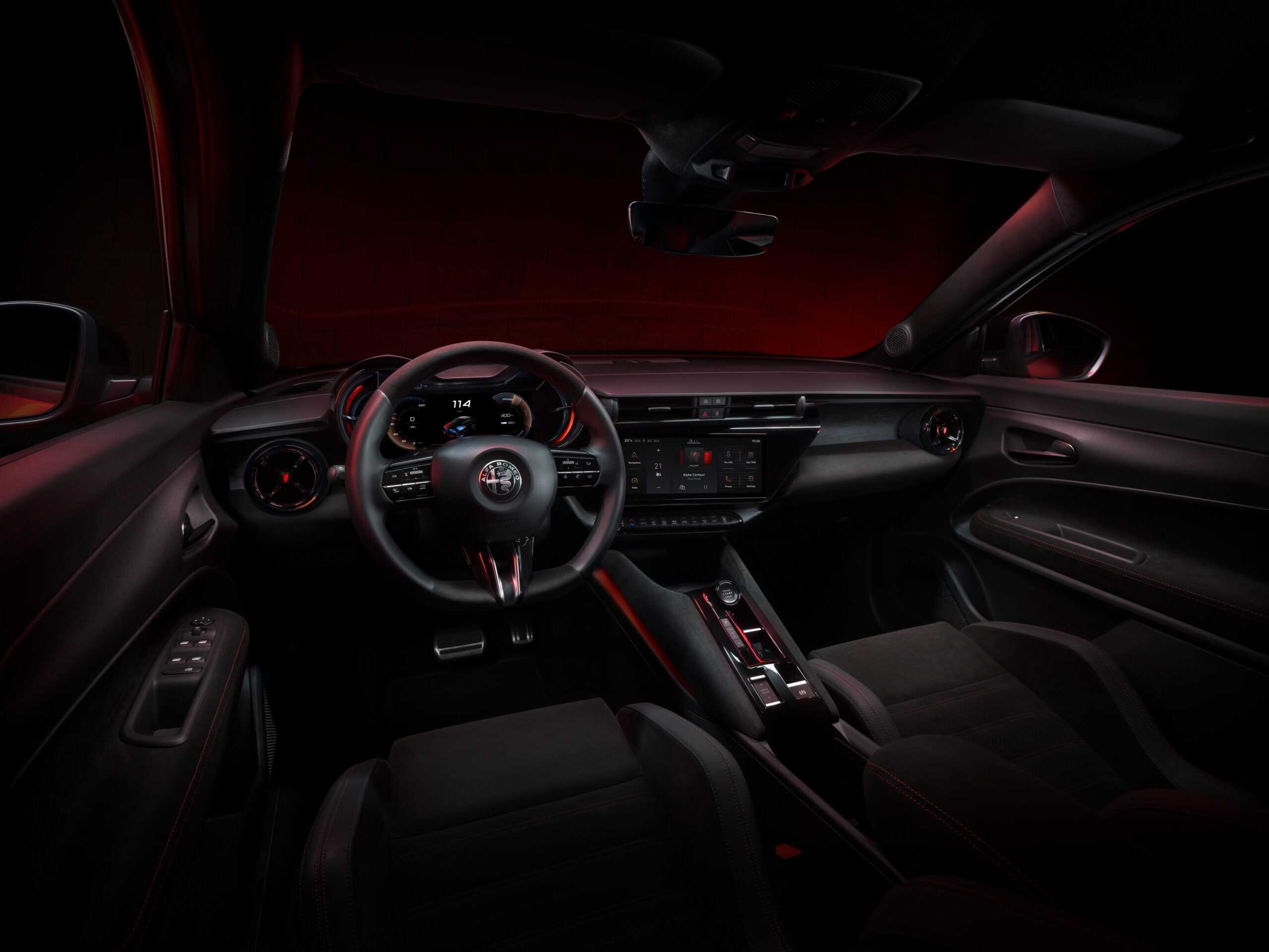 The battery pack can be charged at up to 100 kW, in which case it’ll take less than half an hour to replenish the battery from 10% to 80%. The more potent Veloce model with 240 hp has sharper steering and a stiffer suspension lowering the ride height by 25 mm. This hotter Milano also gets front and rear anti-roll bars and better tires.