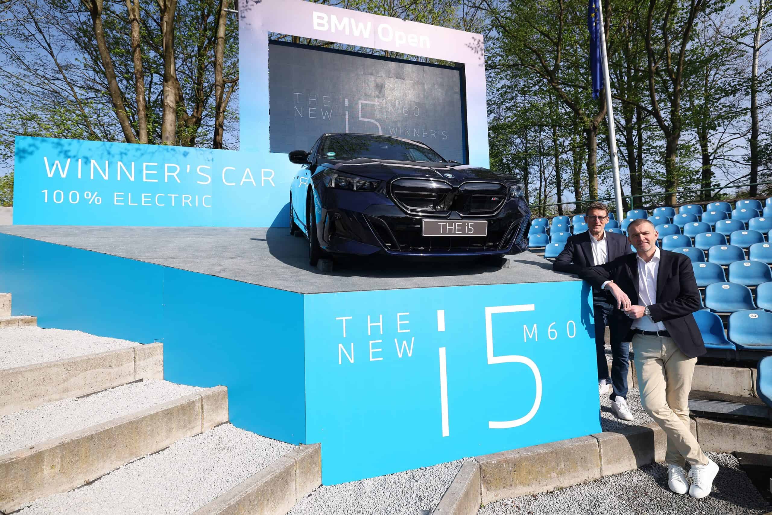 BMW Germany boss Christian Ach took the wraps off the big prize on the center court at the MTTC Iphitos. He was joined at the tennis club in Munich by tournament director Patrik KĂĽhnen. Previously, KĂĽhnen had been invited to the Dingolfing factory to inspect the i5 M60 and even drive it for a bit.