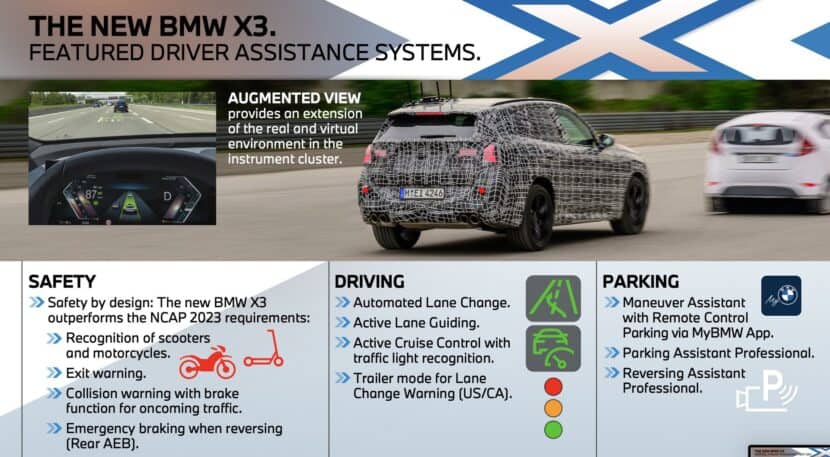 The Automated Lane Change Assistant will be offered in the new X3 models, along with a trailer mode for Lane Change Warning, only available in the United States and Canada. For the first time, the Parking and Maneuver Assistant can be operated remotely via the My BMW app.