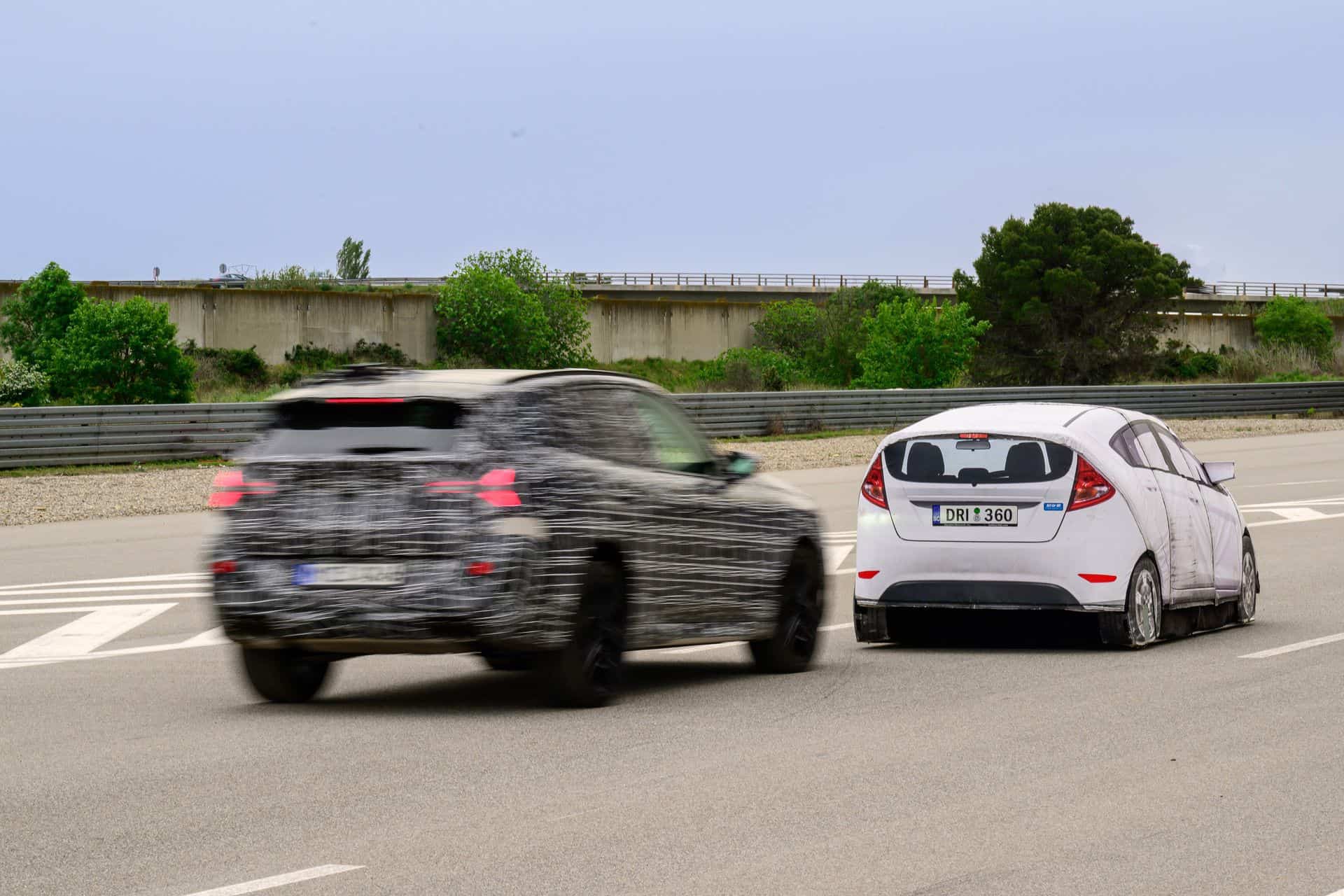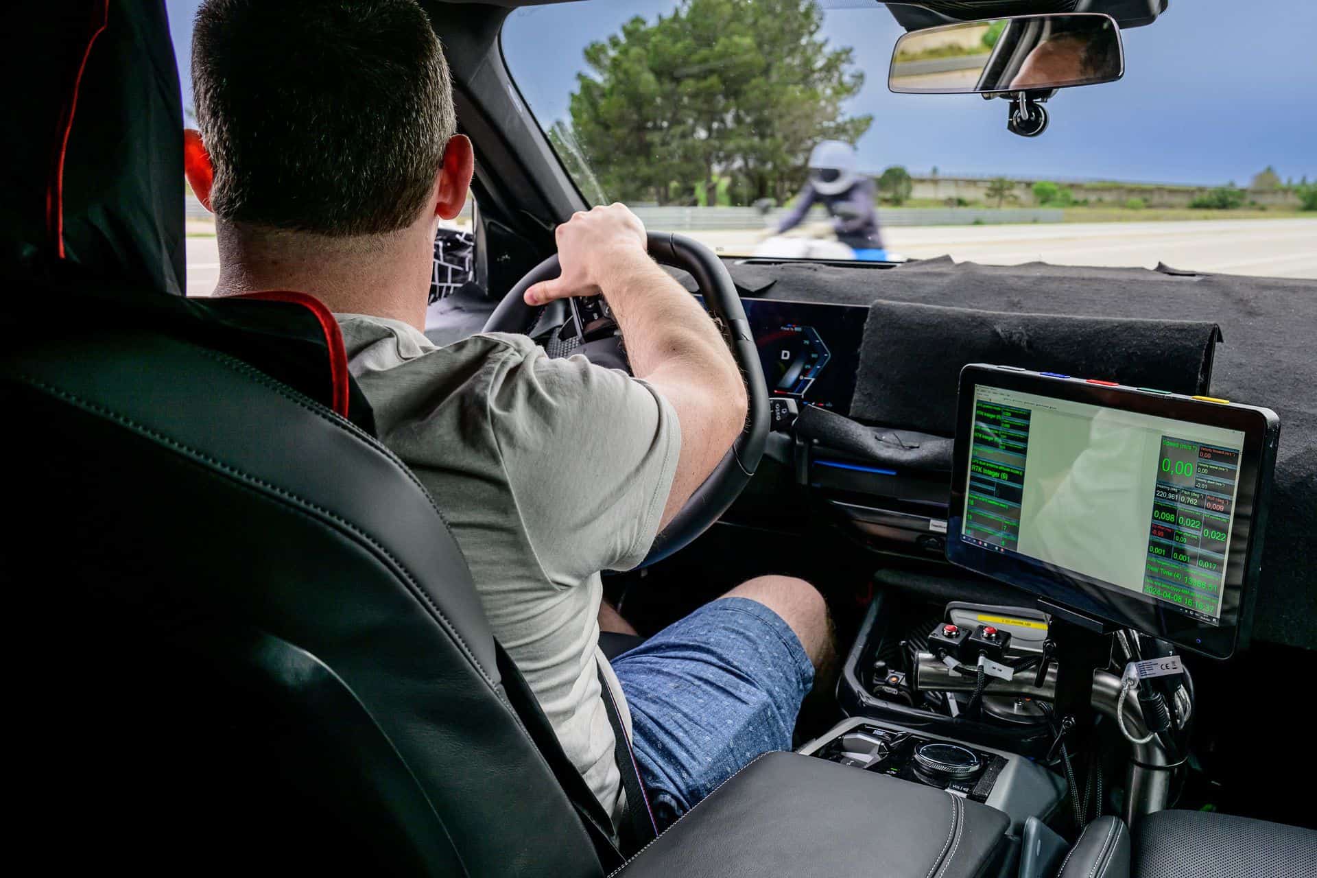 It was a windy day in Miramas, one of the windiest I’ve ever experienced. But it turned out to be the perfect setup to test a suite of different functions, one of these being the Emergency Braking system. On a closed track, the BMW engineers set up some obstacles and cars in front of us to test the Emergency Braking functions at different speeds, starting at 30 km/h, then 50 km/h, and finally at 80 km/h. The goal was to test object recognition in different scenarios: moving targets and pedestrians, static objects, and oncoming traffic.