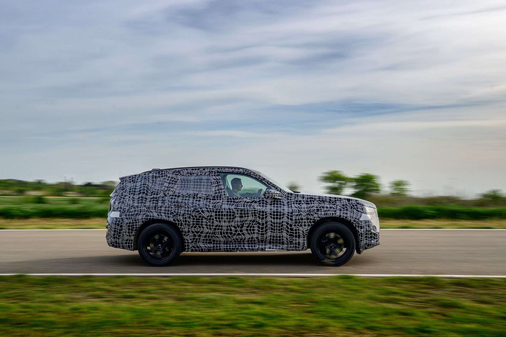 At the front, the M Sport package looks quite aggressive, in a good way, with kidney grilles that open and close, showcasing a different design in each state. The headlights feature two LED bars, playing on the double headlamps theme of BMWs. The side views show a bit more of a sloping roofline compared to the G01 X3. The rear end was probably the most camouflaged part of the car, but peeking from underneath the camo was an X-motif-like design of the taillights.
