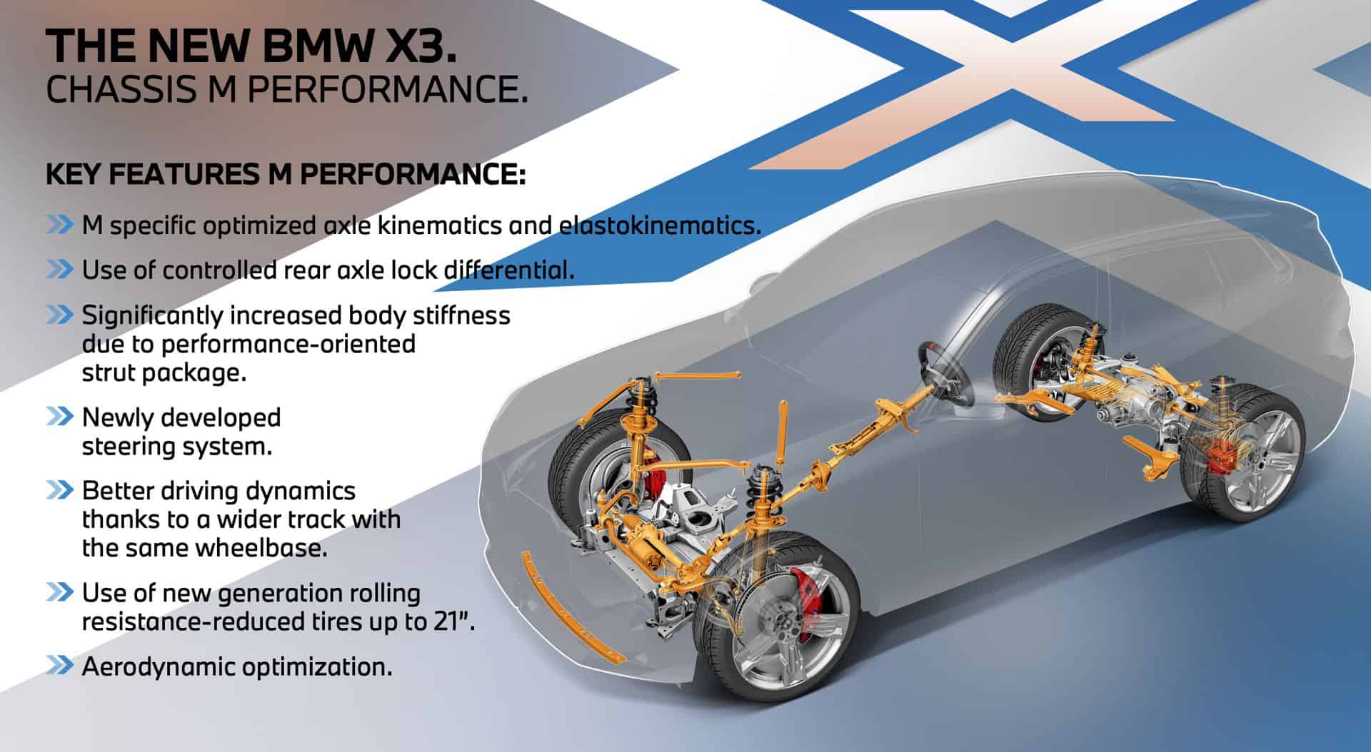 Moving on to details that were shared with us, the 2025 BMW X3 has a drag coefficient of 0.27, compared to 0.29 in the current model. BMW mentioned that the X3 has a wider track and will offer wheels up to 22 inches in size, starting at 18 inches. They are wrapped in Label A tires, considered the best in class, and optimized specifically for the X3 to deliver both performance and comfort.
