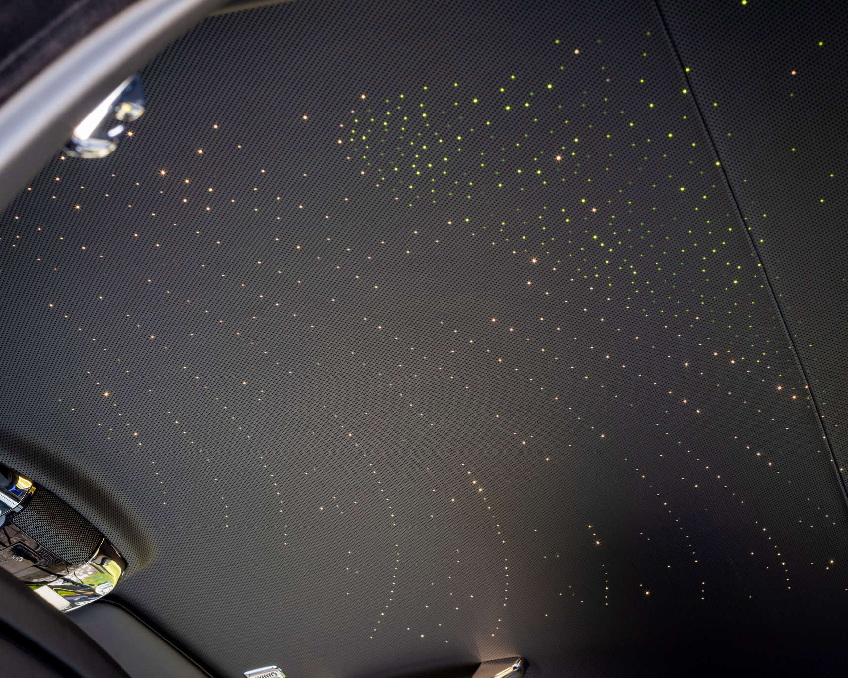 Its interior looks like a work of art with 43,096 stitches across the dashboard along with 768 Galileo Blue and 576 white stars in the headliner. The seats are wrapped in a combination of Blue Grey, Navy Blue, and Arctic White leather with Arctic White stitching for a contrasting effect.