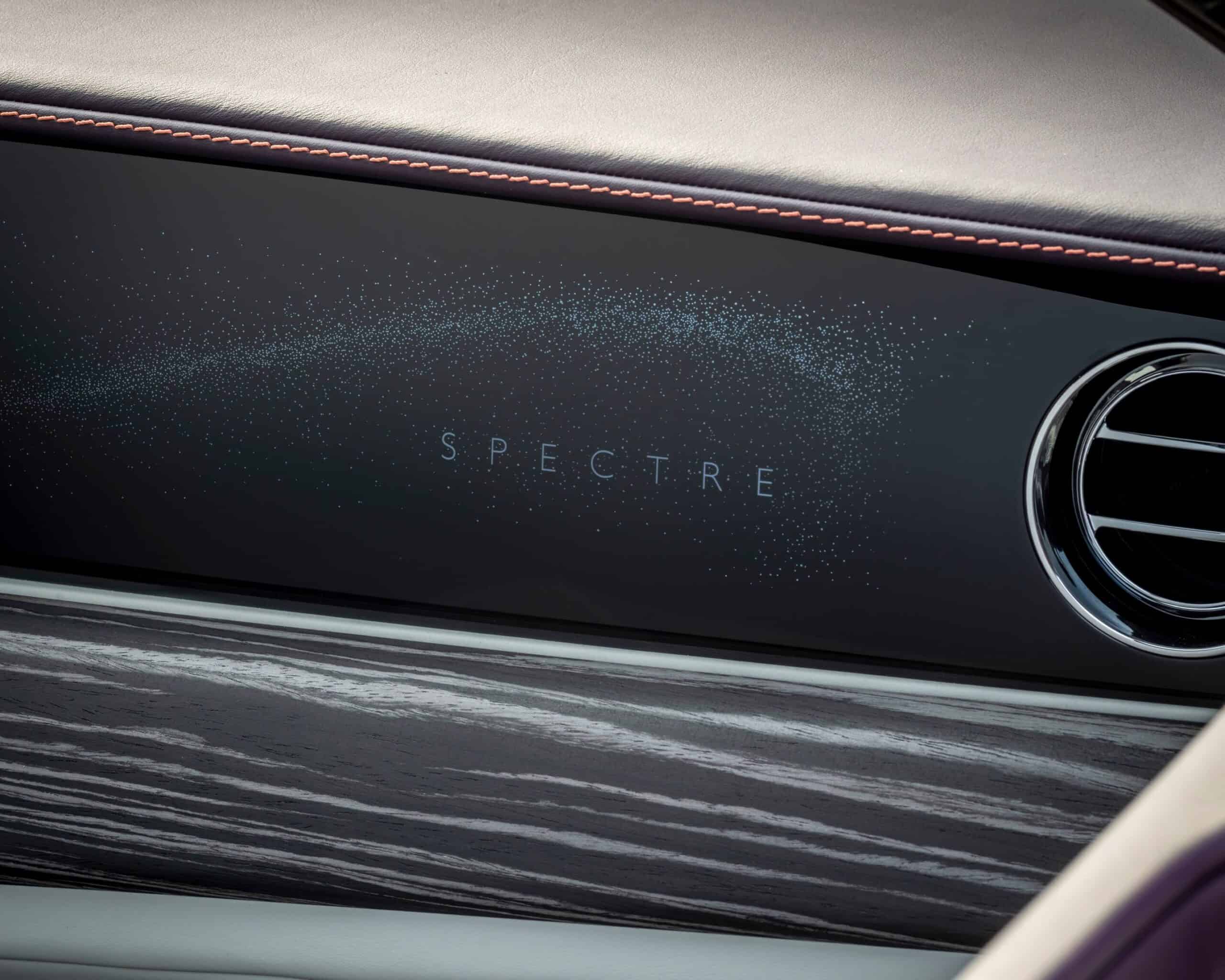 Starting with the EV, its striking two-tone finish takes after South America’s tropics. Spectre combines Lantana Red with Tempest Grey and rides on 23-inch wheels with a seven-spoke, part-polished look. The center caps get a body-matching Lantana Red while the Spirit of Ecstasy is discreetly illuminated.