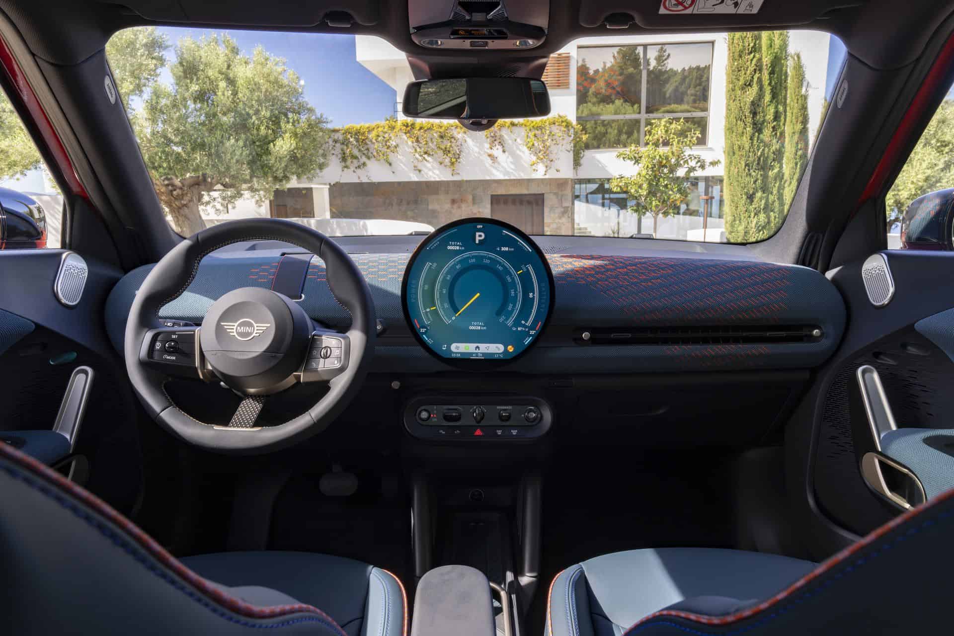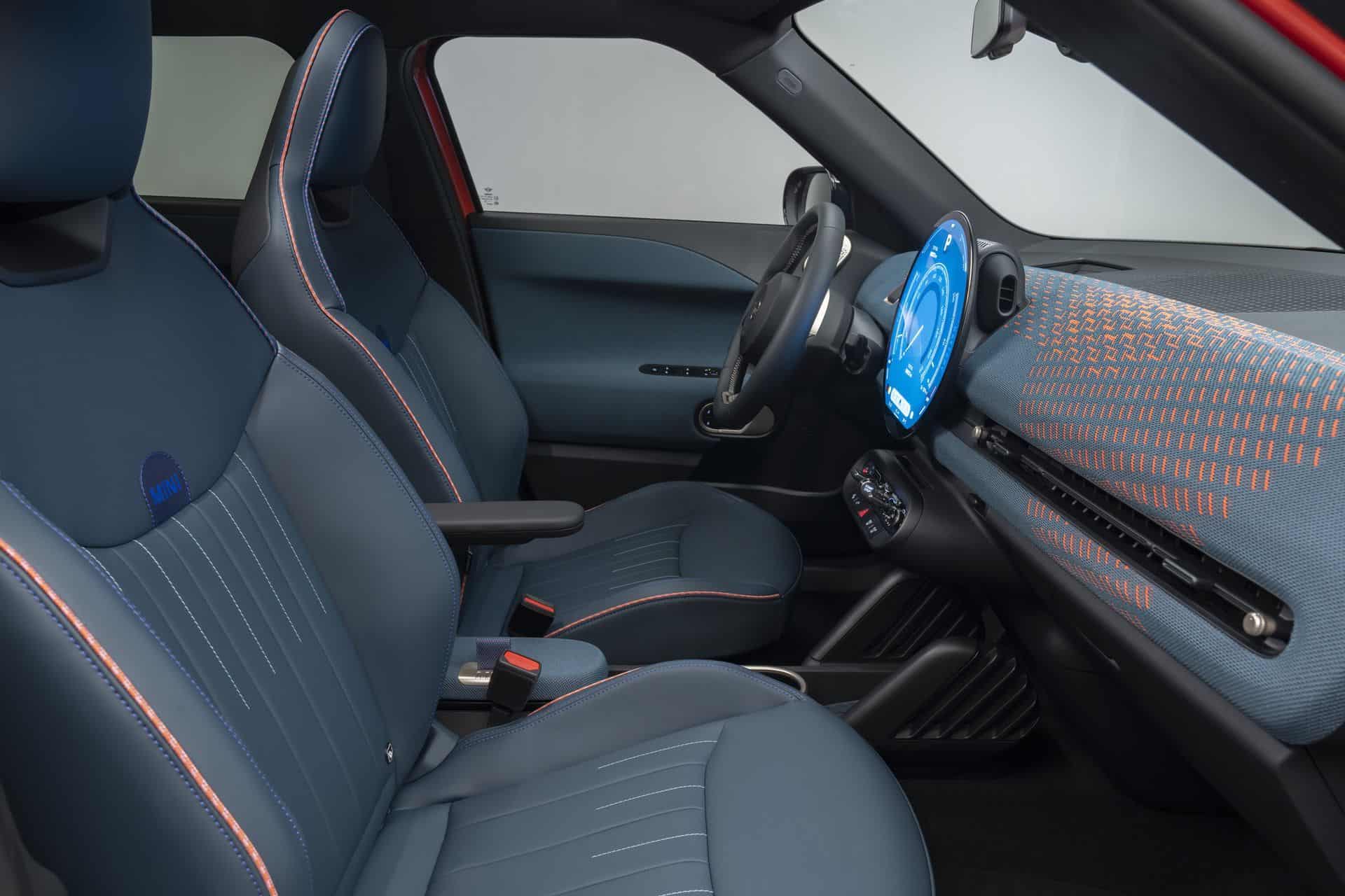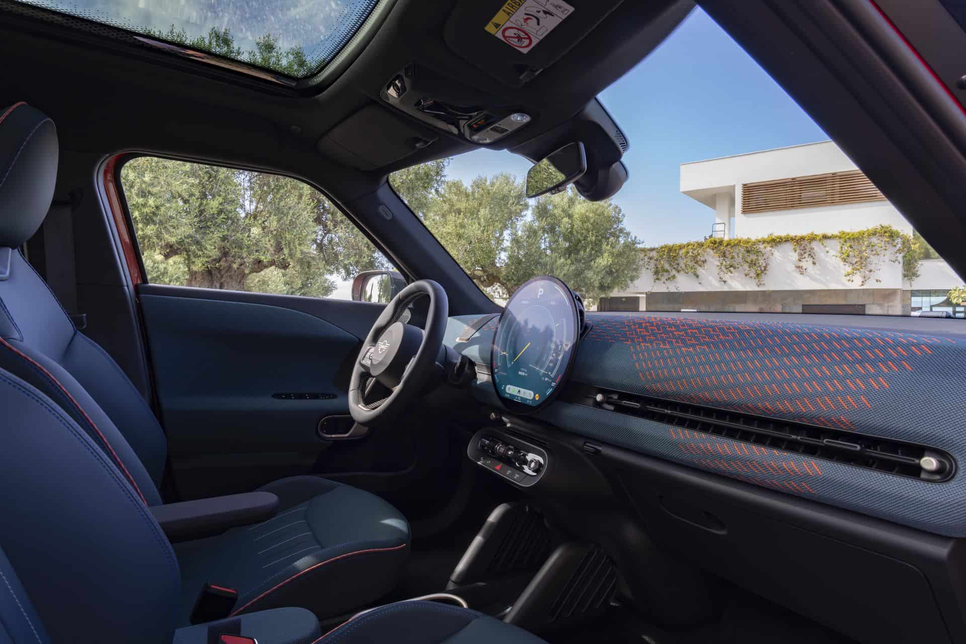 The interior should look instantly familiar since it’s largely carried over from the Cooper. The focal point is unquestionably the circular OLED screen with a 9.4-inch diagonal. It runs on MINI’s equivalent of the iDrive 9 infotainment system and provides access to all relevant information. There’s no digital instrument cluster in front of you but a head-up display is optional.