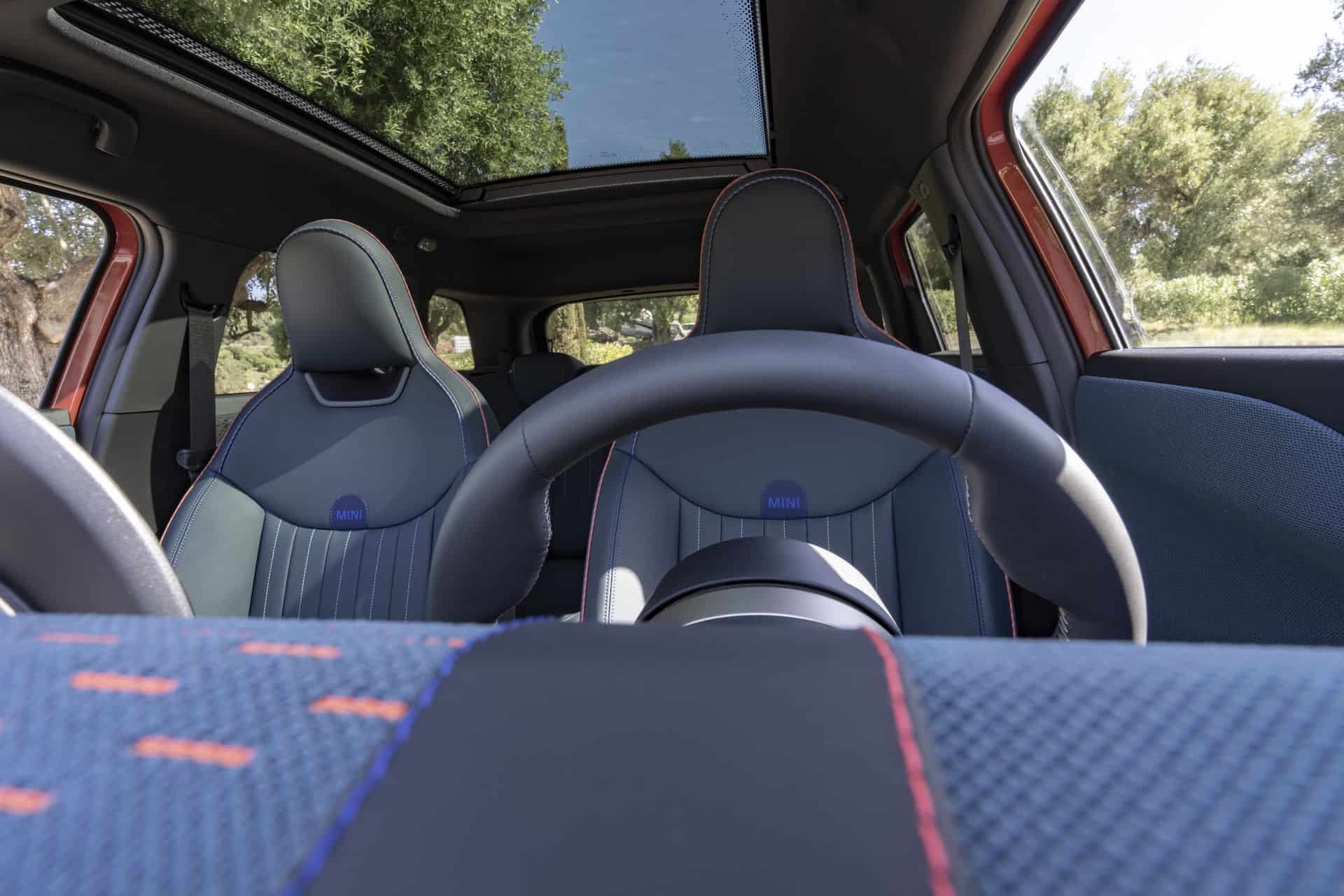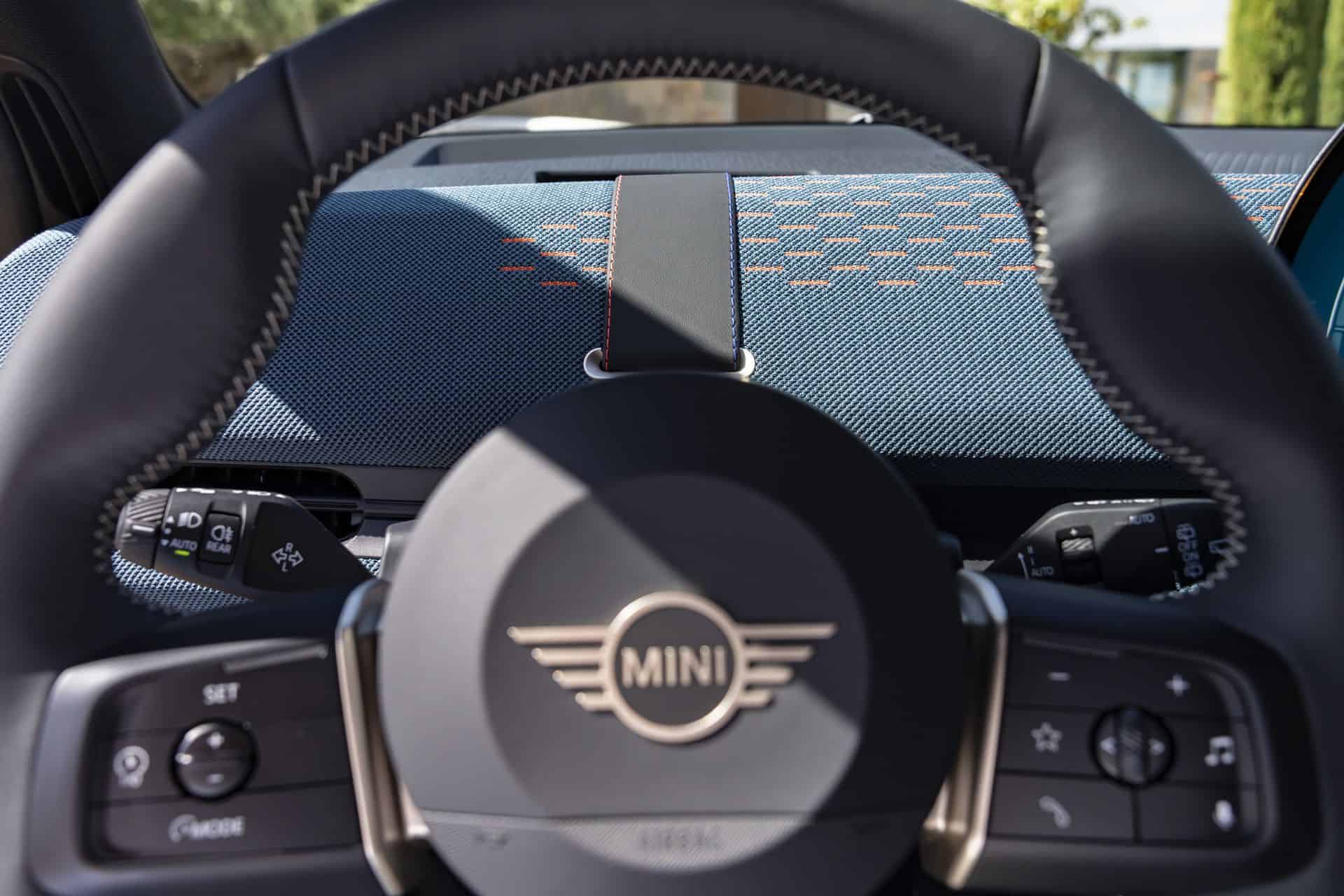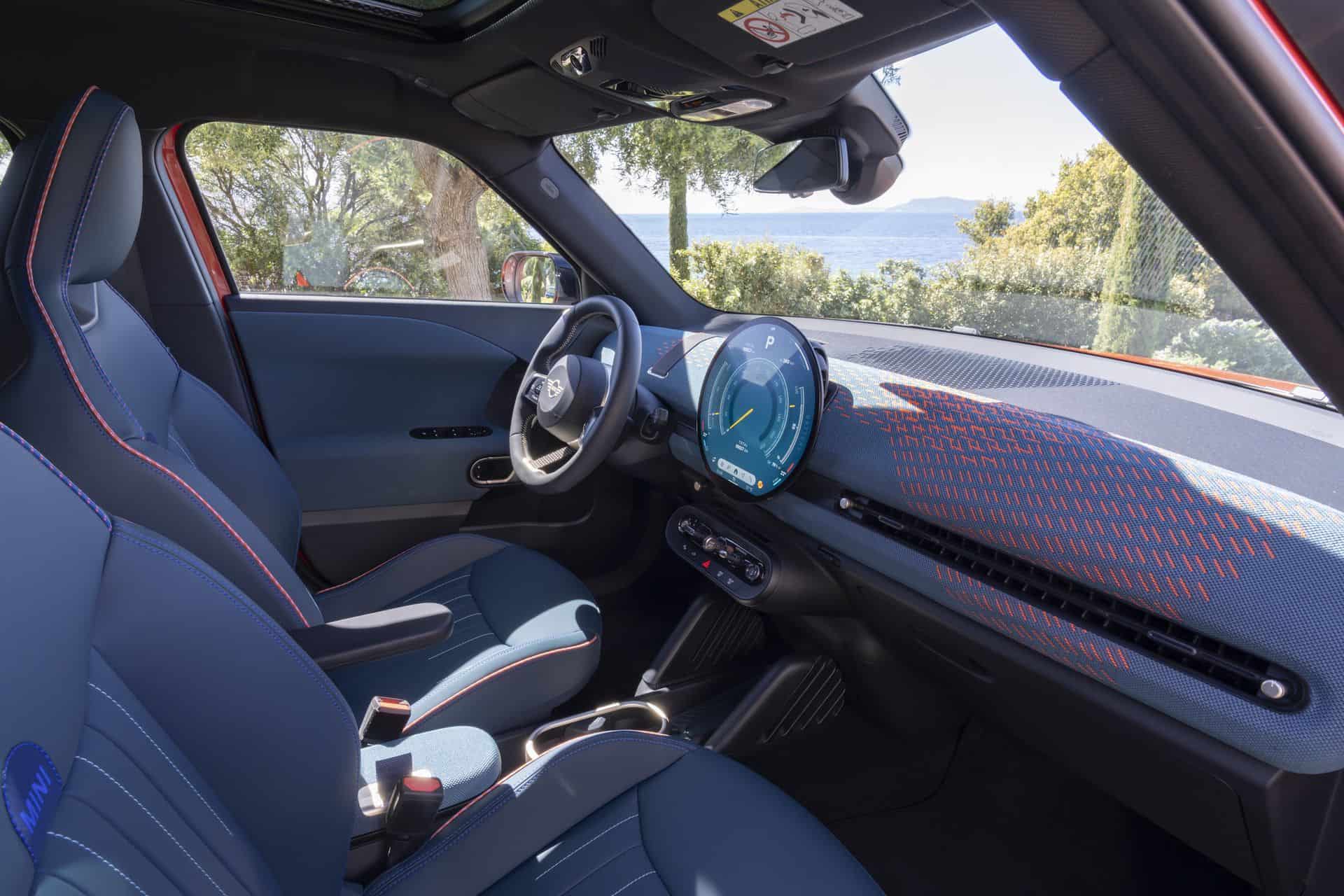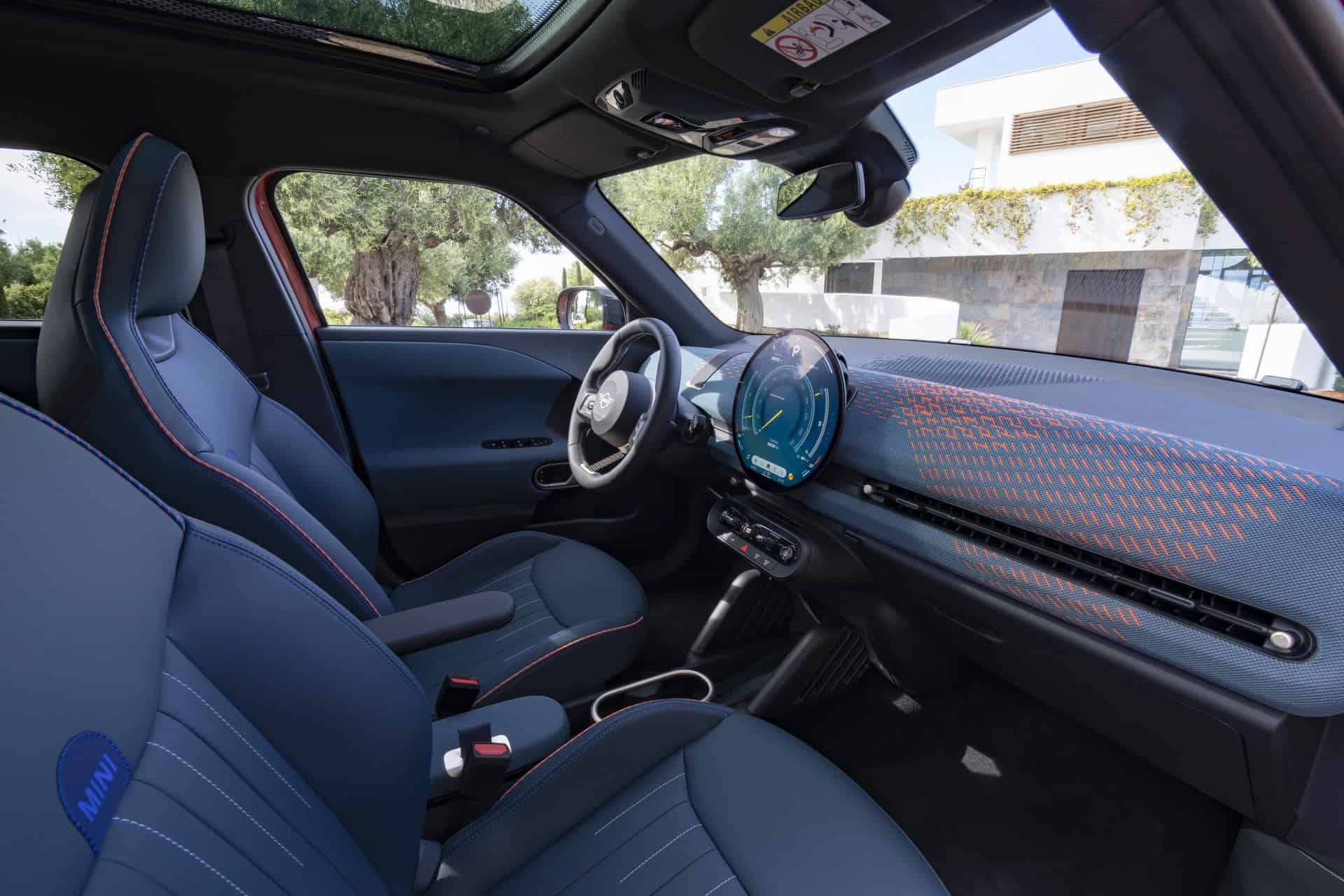 The interior should look instantly familiar since it’s largely carried over from the Cooper. The focal point is unquestionably the circular OLED screen with a 9.4-inch diagonal. It runs on MINI’s equivalent of the iDrive 9 infotainment system and provides access to all relevant information. There’s no digital instrument cluster in front of you but a head-up display is optional.