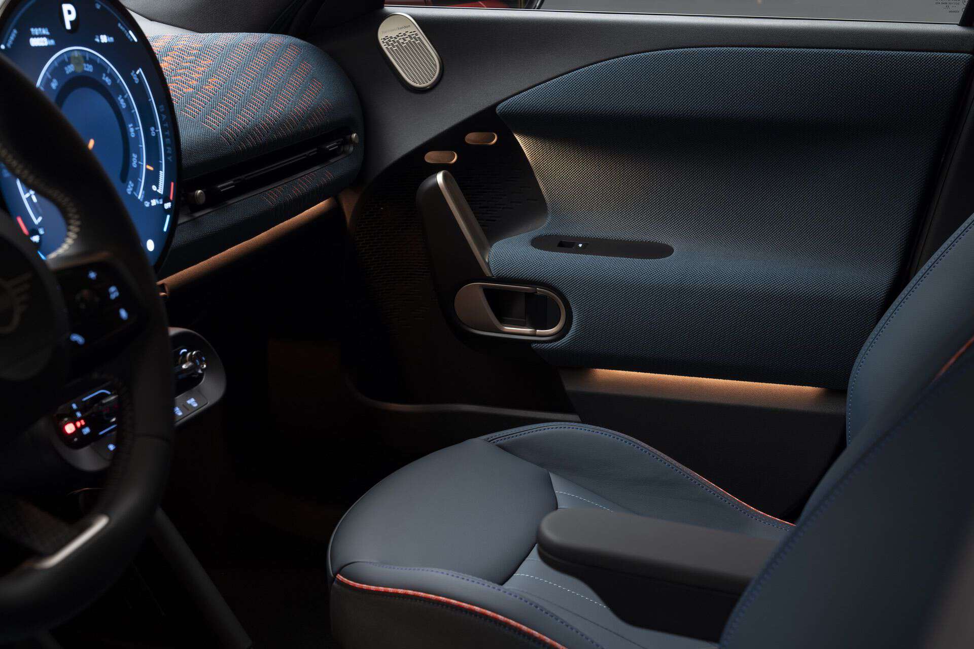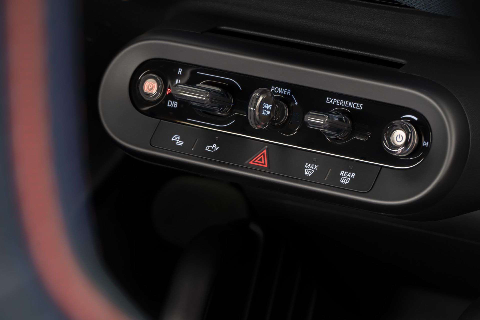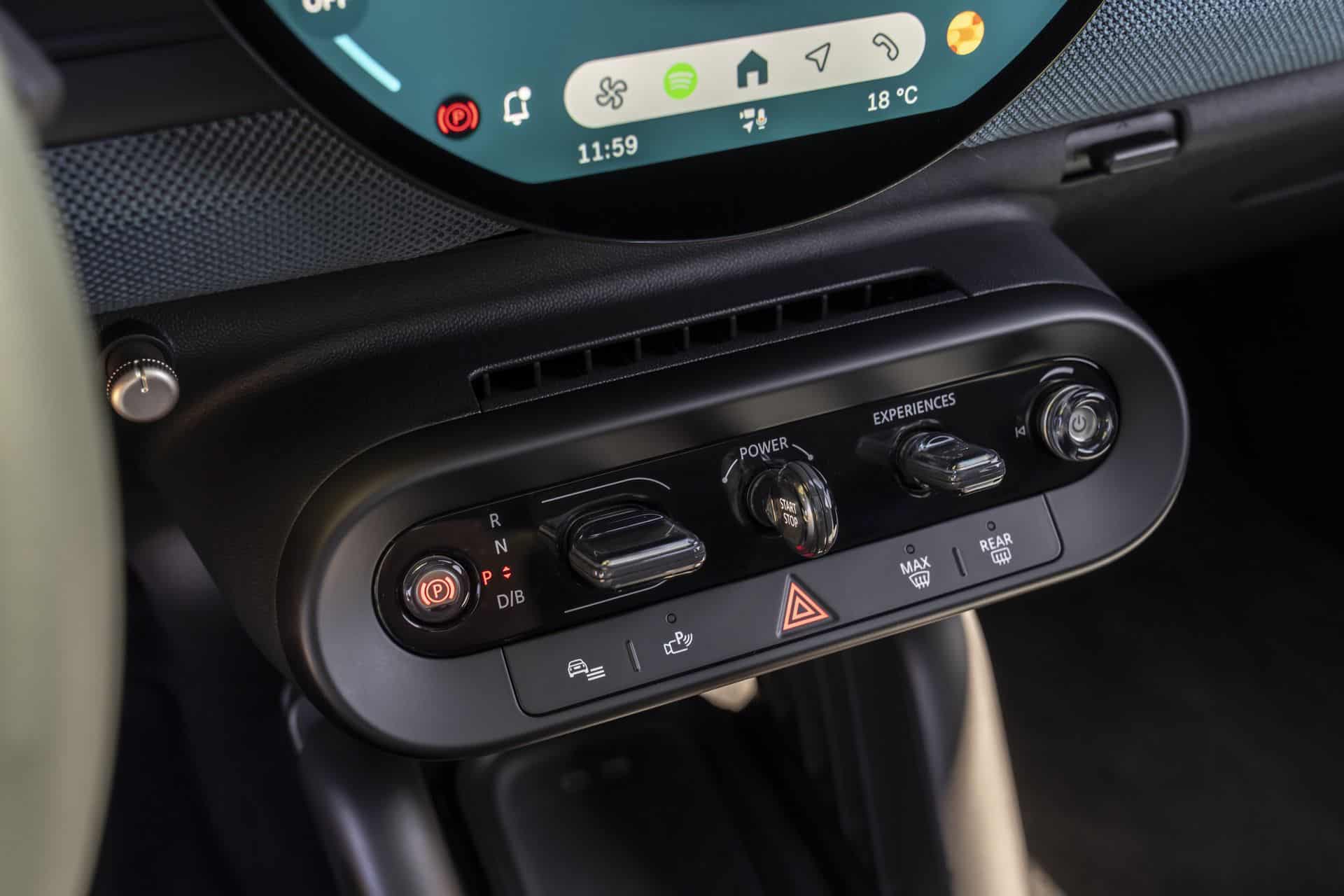 Thankfully, not everything has been moved inside the round display. MINI still integrates its signature toggle bar below the screen. It now has a new look and bundles five individual toggles: parking brake, gear selector, stop/start, experience mode, and volume control. The experience mode changes the ambient lighting settings, the screen’s theme, and the artificial sounds pumped through the speakers.