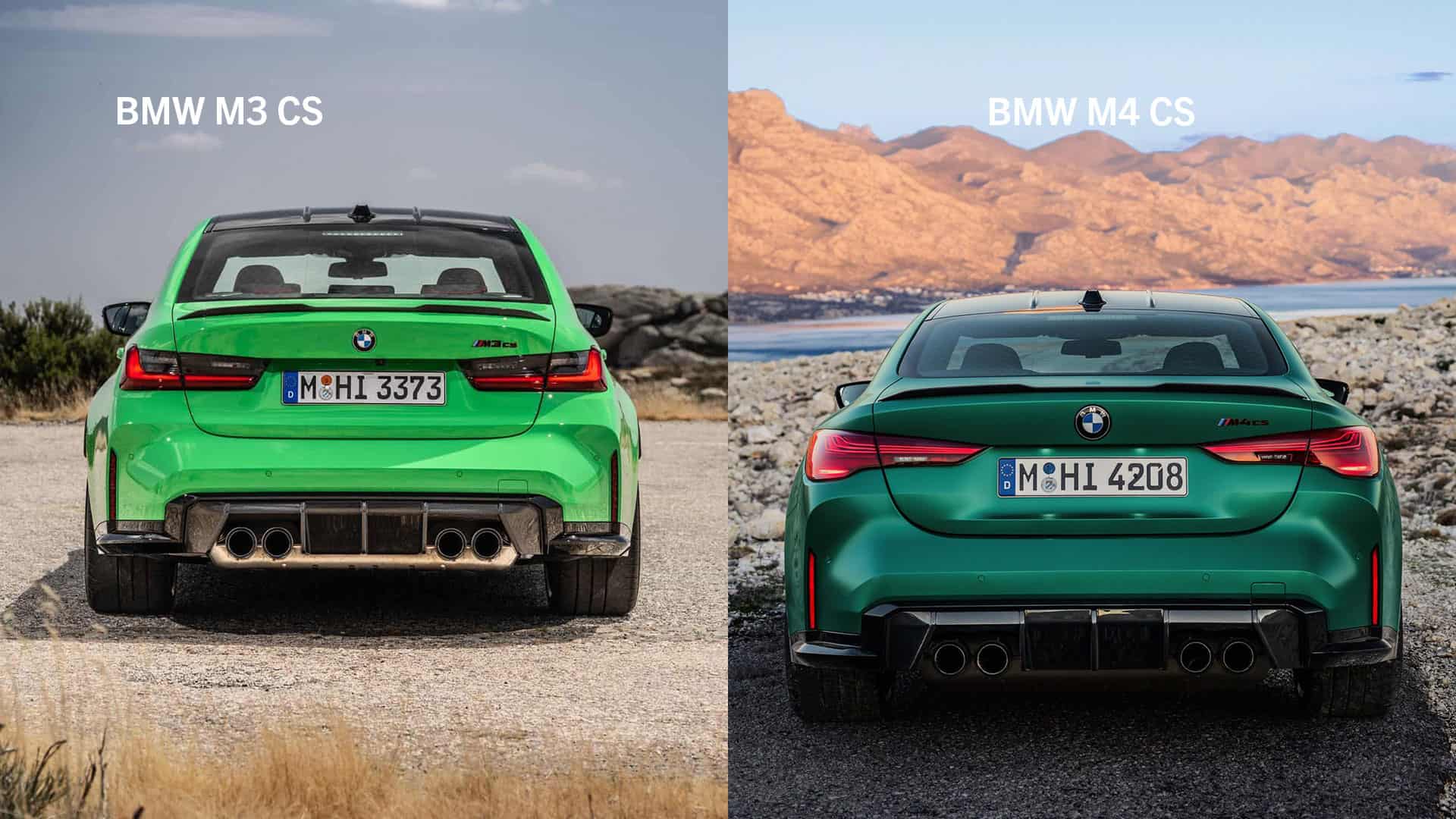 Both the M4 CS and M3 CS inherit their aggressive aesthetics from the M4 CSL, featuring bold front air intakes and distinctive hood stripes. However, the 2025 BMW M4 CS, as a two-door coupe, and the G80 M3 CS, a four-door sedan, present notable differences in body style. The M4 CS continues with a sleeker, coupe-specific design that includes updated adaptive LED front lights and a rear laser setup—elements shared with the lesser 4 Series models but first seen on the M4 CSL. Both cars feature a similar, if not identical rear spoiler made of carbon fiber. The diffuser and exhaust are also very close in design.