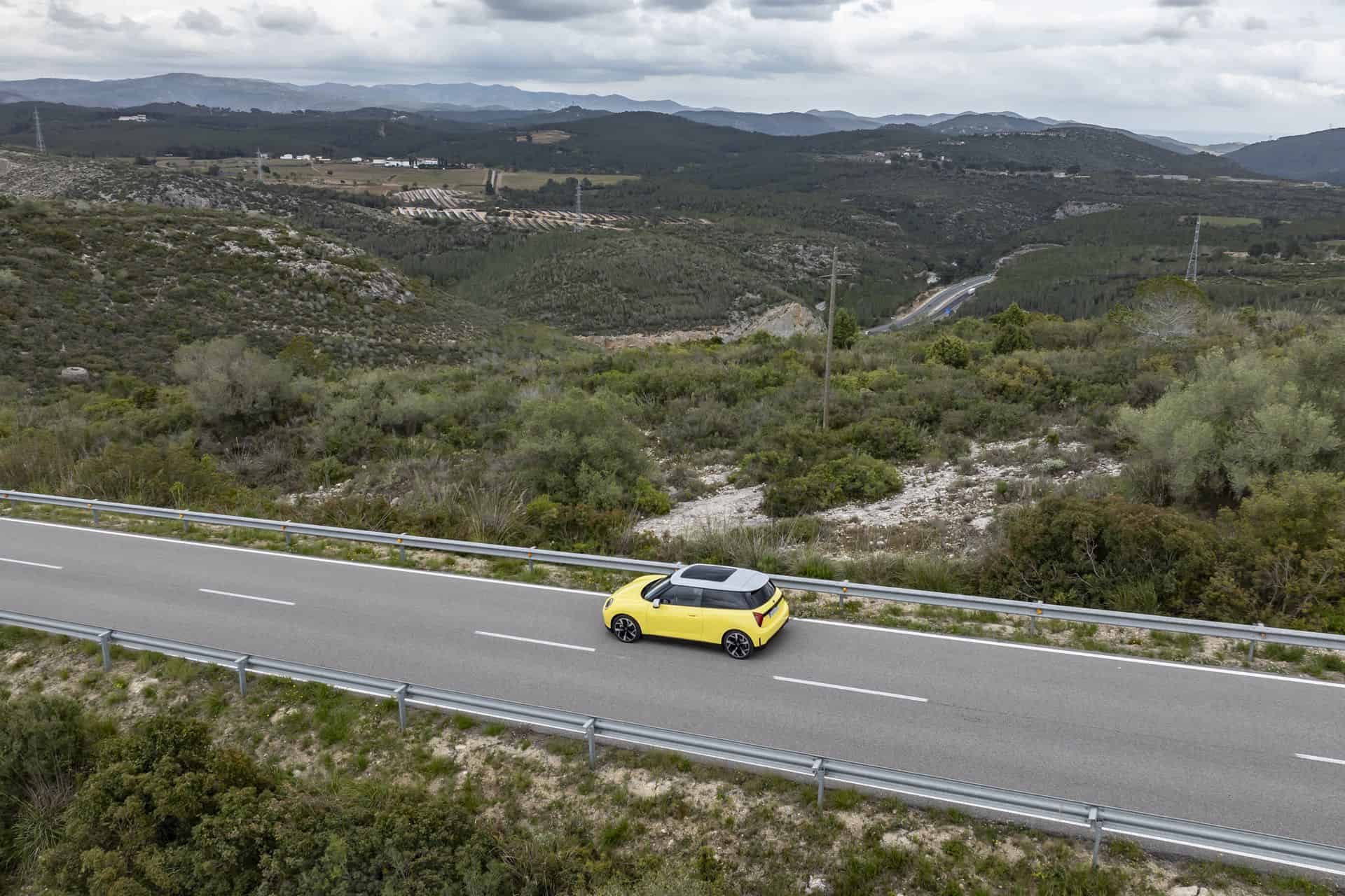 The testing route through the hills surrounding Sitges really puts the 2024 MINI Cooper SE’s capabilities to the test, with tight bends that highlight its agility and grip. In “Go-Kart” mode, the Cooper SE feels sportiest, thanks to a software tuneup of its suspension, steering, and braking, which tightens the car’s response and adds a distinct, aggressive electric sound, enhancing the driving experience. Despite not being a true go-kart, it maintains the hot hatch character, tackling corners with confidence and minimal body roll.