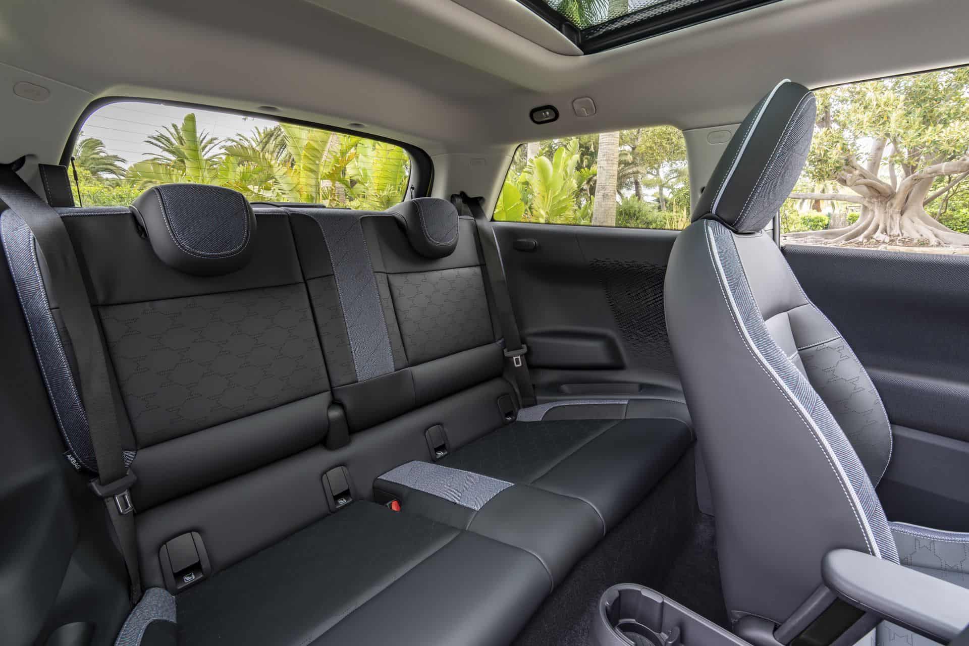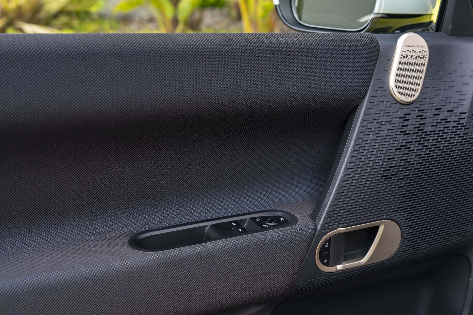 The 2024 MINI Cooper Electric boasts substantial legroom in the front, thanks primarily to the dedicated electric platform which allowed MINI designers to push forward the front-seating position. The flat roof and absence of a retractable sunroof allow for more headroom, which is particularly important for someone like me, who stands 1.9 m tall (6’3″). The armrest is a bit smaller in the Cooper electric than in the F66 gasoline model—due to the slightly wider front seats. Other visual changes compared to the F66 Cooper include the positioning of the door handle, sitting a bit lower on the J01 and the presence of the audio speaker on the road, rather on the A-pillar.