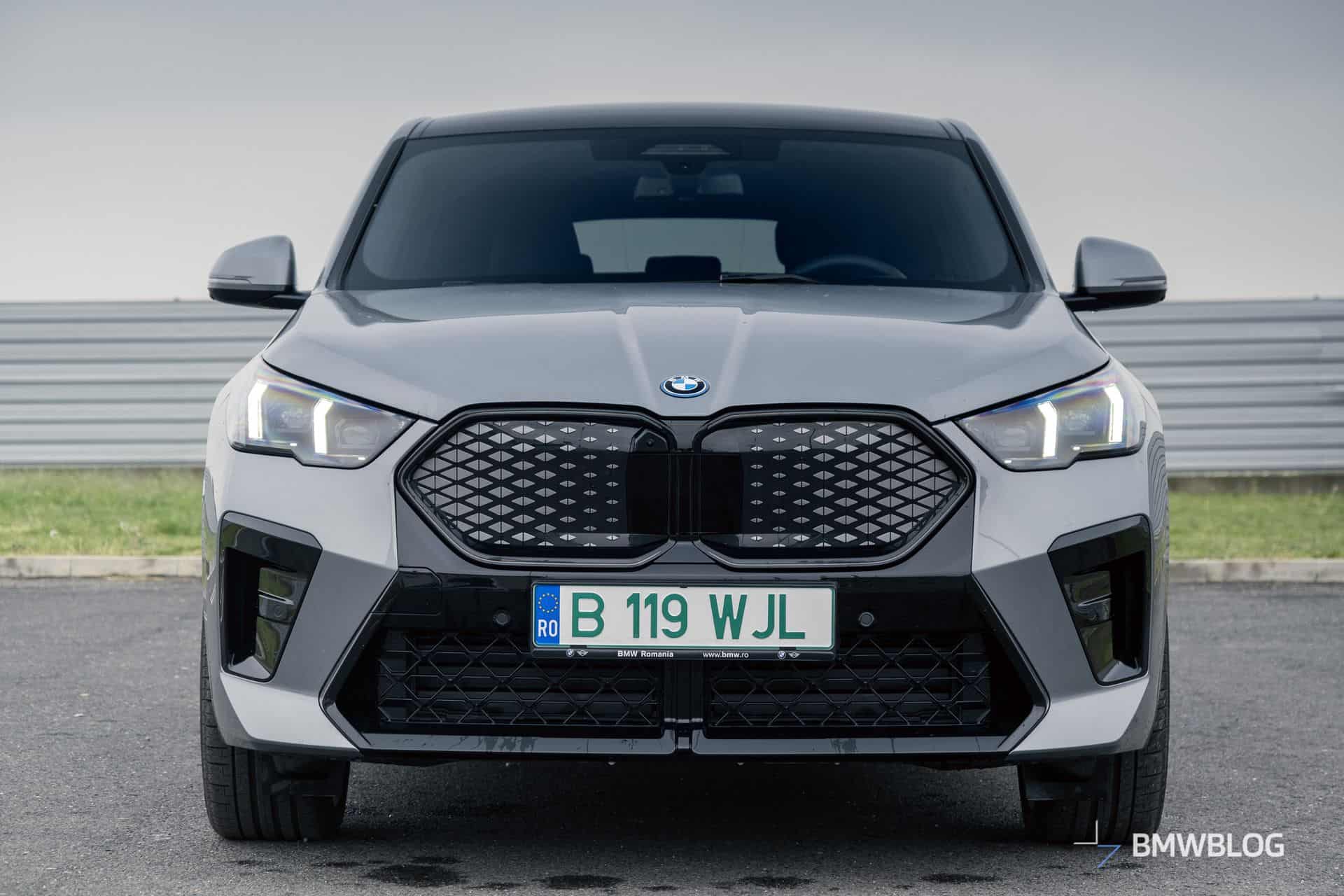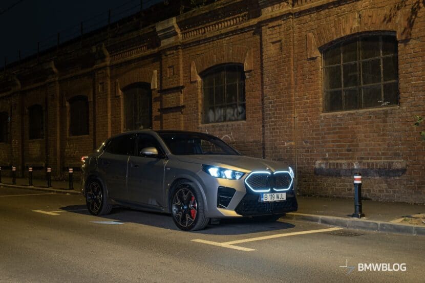The iX2 retains the same size grille as the combustion X2, but it’s completely covered up. As far as BMW’s oversized grilles go, this one looks pretty good, and it works surprisingly well with the light-up grille surround that my tester has. This really makes the iX2 pop at night, especially when you see one in your rear-view mirrors.