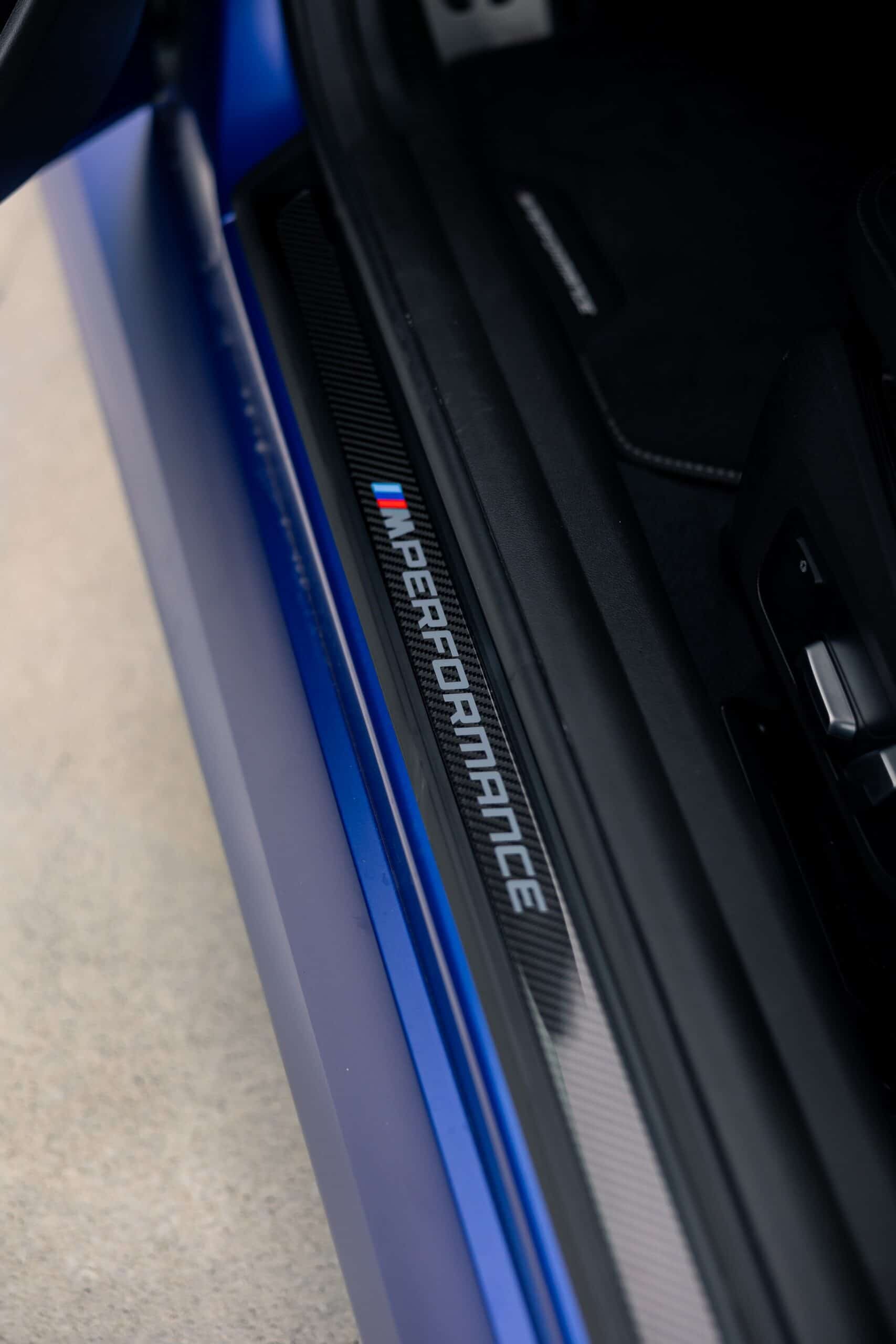 Additional goodies are noticeable inside where this M2 G87 has the steering wheel partially wrapped in Alcantara. Equipped with carbon front bucket seats, this high-end build boasts M Performance branding on the side sills, steering wheel, and on the passenger side of the dashboard.