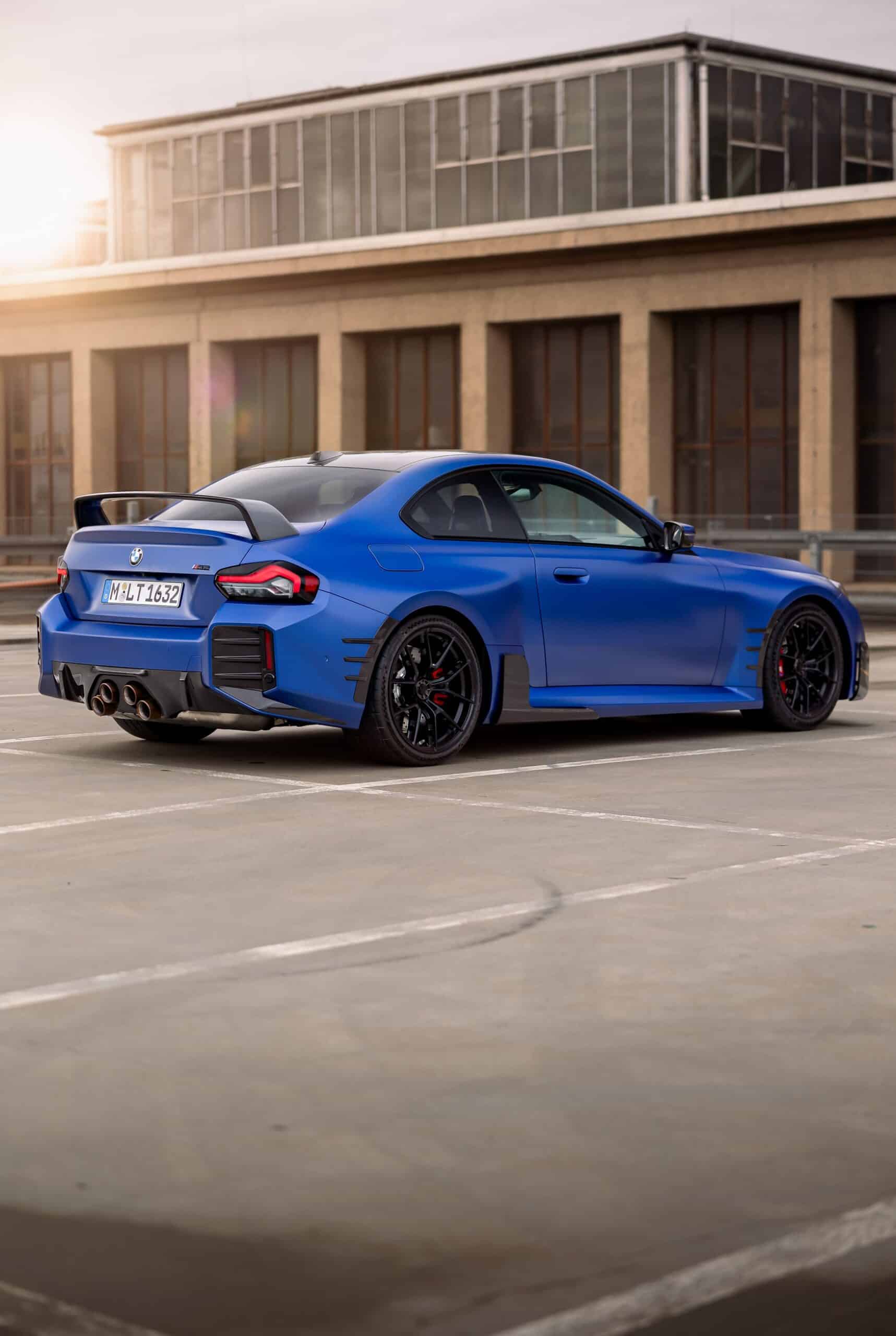 Eagle-eyed readers will also spot another important change over a standard M2 G87. We’re talking about the center-lock forged wheels. You can have them on the M3 and M4 as well, having been originally offered only for the rare 3.0 CSL. The shoes come in matte Jet Black with milled M Performance lettering. BMW fits the lightweight wheels with 275/35 ZR19 front and 285/30 ZR20 rear tires.