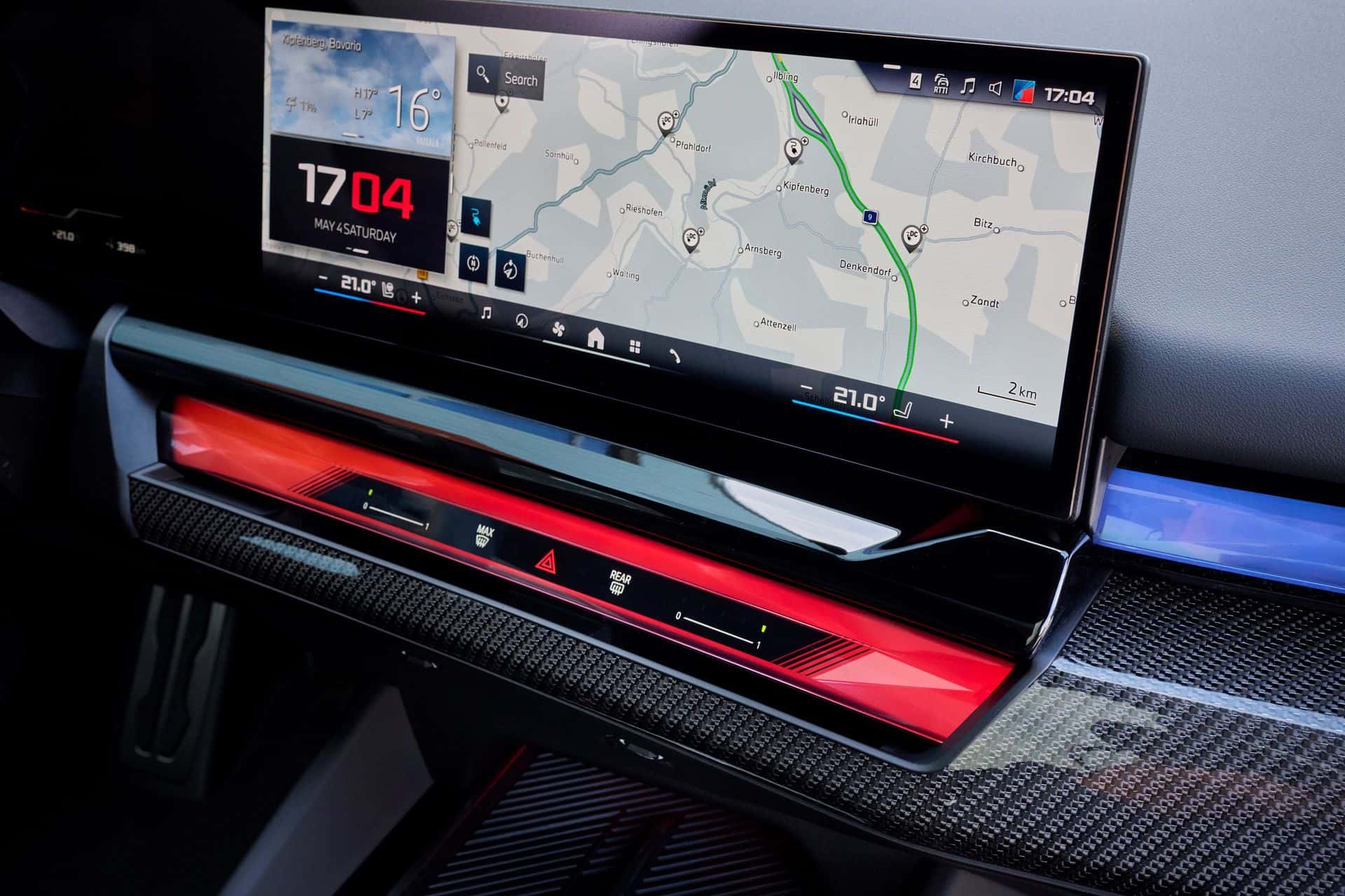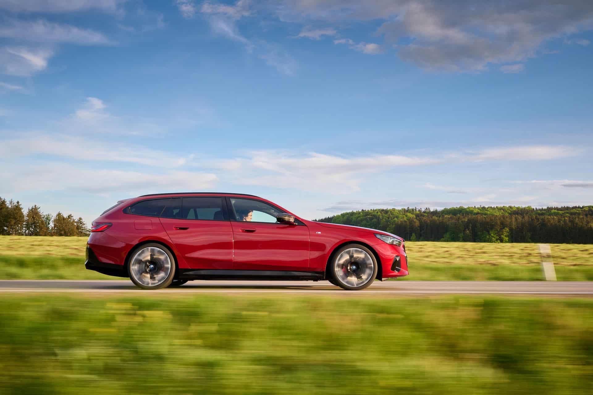 All i5 models feature 2.5-degree rear-axle steering, enhancing agility in tight turns, but only the BMW i5 M60 includes the 5 Series’ new 48-volt active anti-roll technology, keeping the car composed on winding Bavarian backroads. Compared to the sedan, nearly every software setup was adapted to the touring: dampers, limited-slip differential, and suspension.