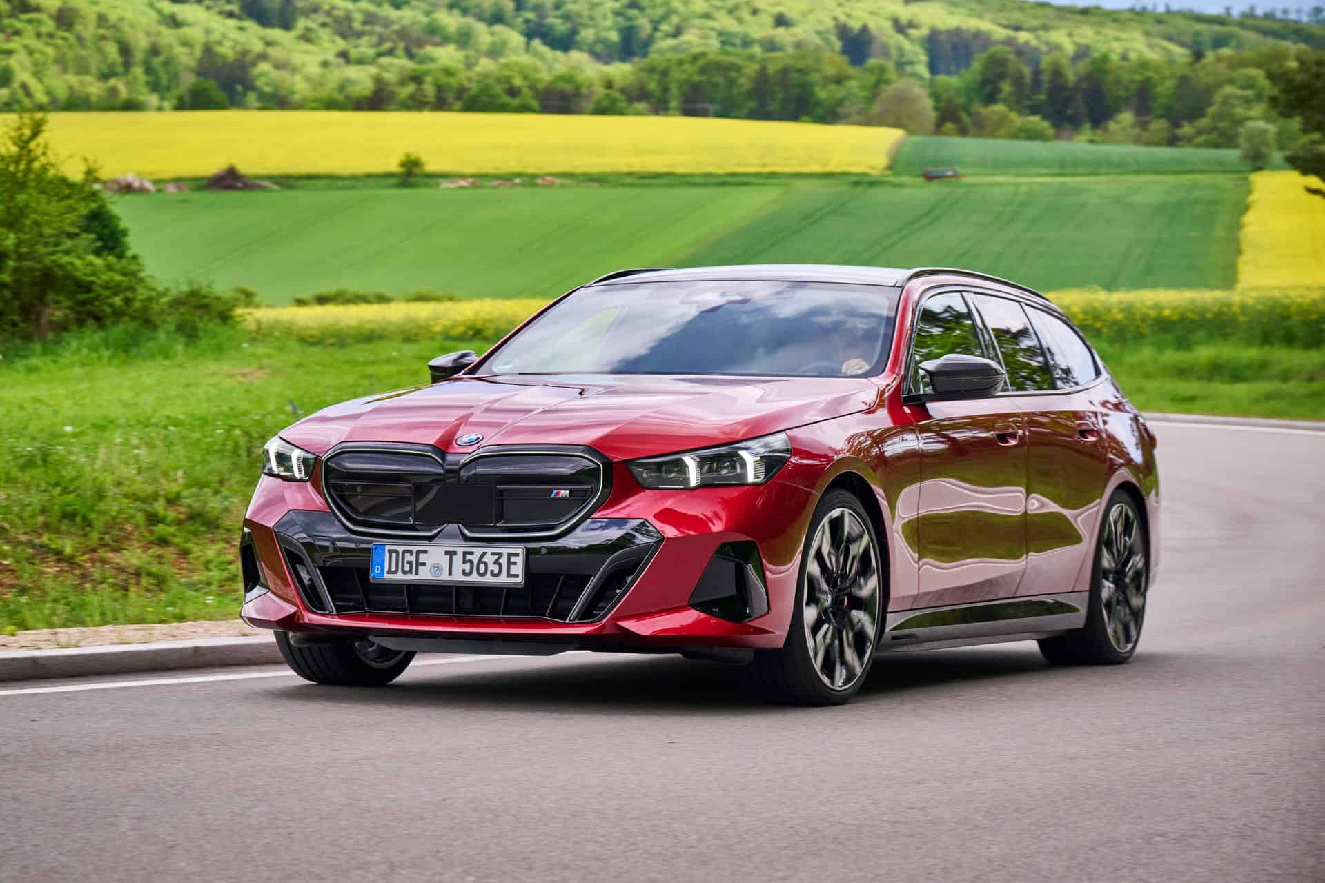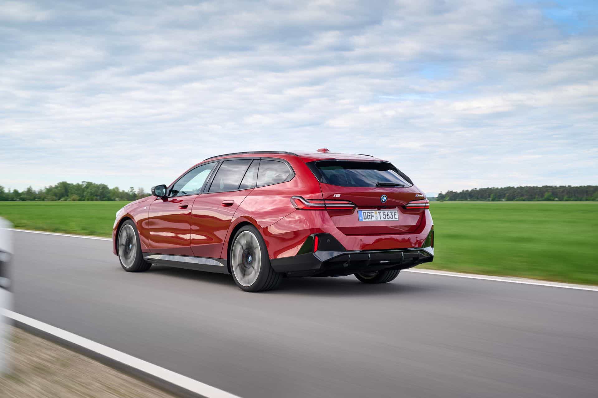 The all-wheel-drive electric wagon can deliver up to 601 PS (593 hp) and 605 lb-ft (820 Nm) with Boost Mode engaged. It uses the same 81.2-kWh battery as the cheaper i5 eDrive40 Touring and can be charged at up to 205 kW. A 10-minute charge will juice up the battery for 88 miles (142 kilometers), and a 10-80 percent state of charge can be achieved in about 32 minutes.