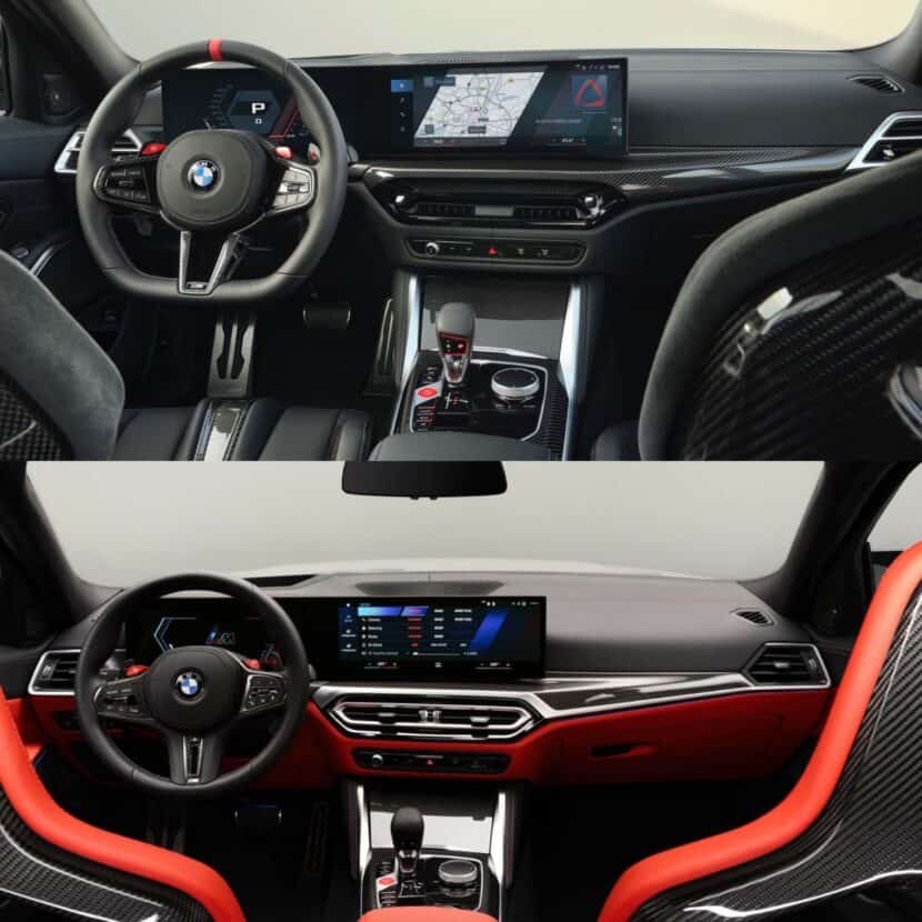 Things get slightly more exciting inside the 2025 M3 and M3 Touring. The (optionally Alcantara-wrapped) reshaped steering wheel with a 12-o’clock marker is a nice addition. Like the squared-off wheel, you’ll find redesigned air vents with ambient lighting elements that mirror what you see in other newer models. You can still opt for carbon-fiber buckets and a host of upholstery colors and trim materials. Like the M4, the M3 LCI is a logical step up in interior quality and feel – a little newer and sportier compared to its predecessor.