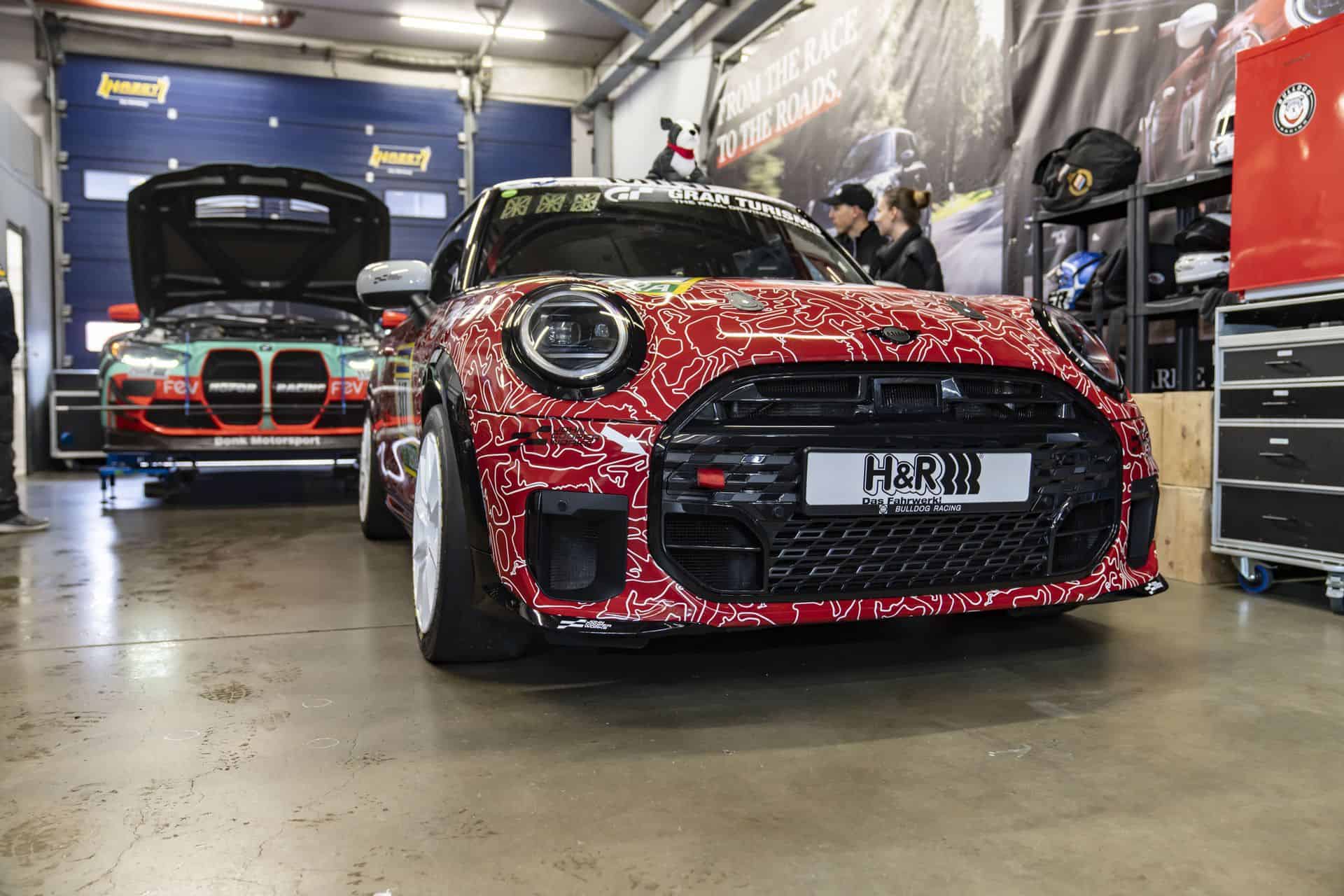 The MINI John Cooper Works PRO, designated as #317, is based on the new MINI John Cooper Works model, making its debut at the Nürburgring ahead of its world premiere in the fall of 2024. This car is camouflaged in a striking red and white motorsport wrap designed by the MINI Design Team, adding an element of intrigue and excitement. Built in Oxford, UK, and refined in Nürburg by Bulldog Racing, the MINI John Cooper Works PRO shows that endurance motorsport can still be exciting and fun.