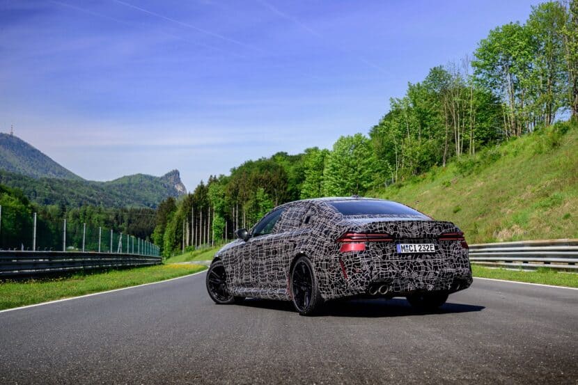 It’s expected to have a combined output of 700+ horsepower but a worryingly high curb weight. We’ve heard through the grapevine that it’ll tip the scales at nearly 5,400 pounds (more than 2,400 kilograms). That said, these figures have not been confirmed yet. The prototype BMW allowed us to photograph last month in Austria at the Salzburgring revealed the wheel+tire combo.