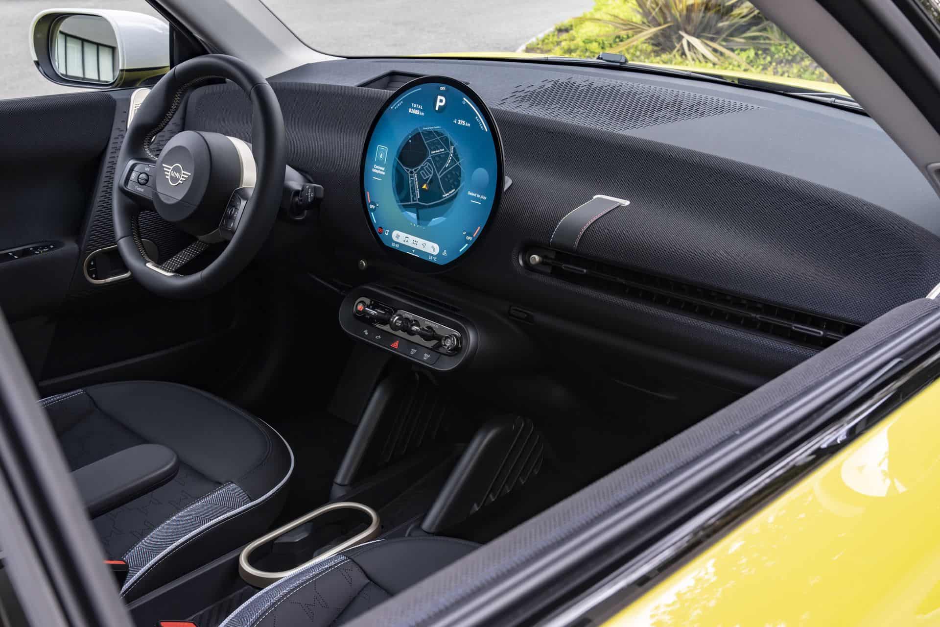 Inside, the new 2024 MINI Cooper SE features a cockpit brimming with character, a compliment I’m sure the MINI design team will appreciate. During a discussion at the press launch event with Oliver Heilmer, Head of MINI Design, we discovered that “Charismatic Simplicity” is the current guiding principle in Munich. And the MINI Cooper electric can be quite charismatic inside. It features a large circular 9.4-inch OLED display, which looks fantastic and is ergonomically easy to operate. It’s also extremely responsive and snappy compared to the Operating System 9 we tested in the MINI Countryman JCW and SE. The display is a nod to the classic central speedometer, while toggle switches add a retro touch.