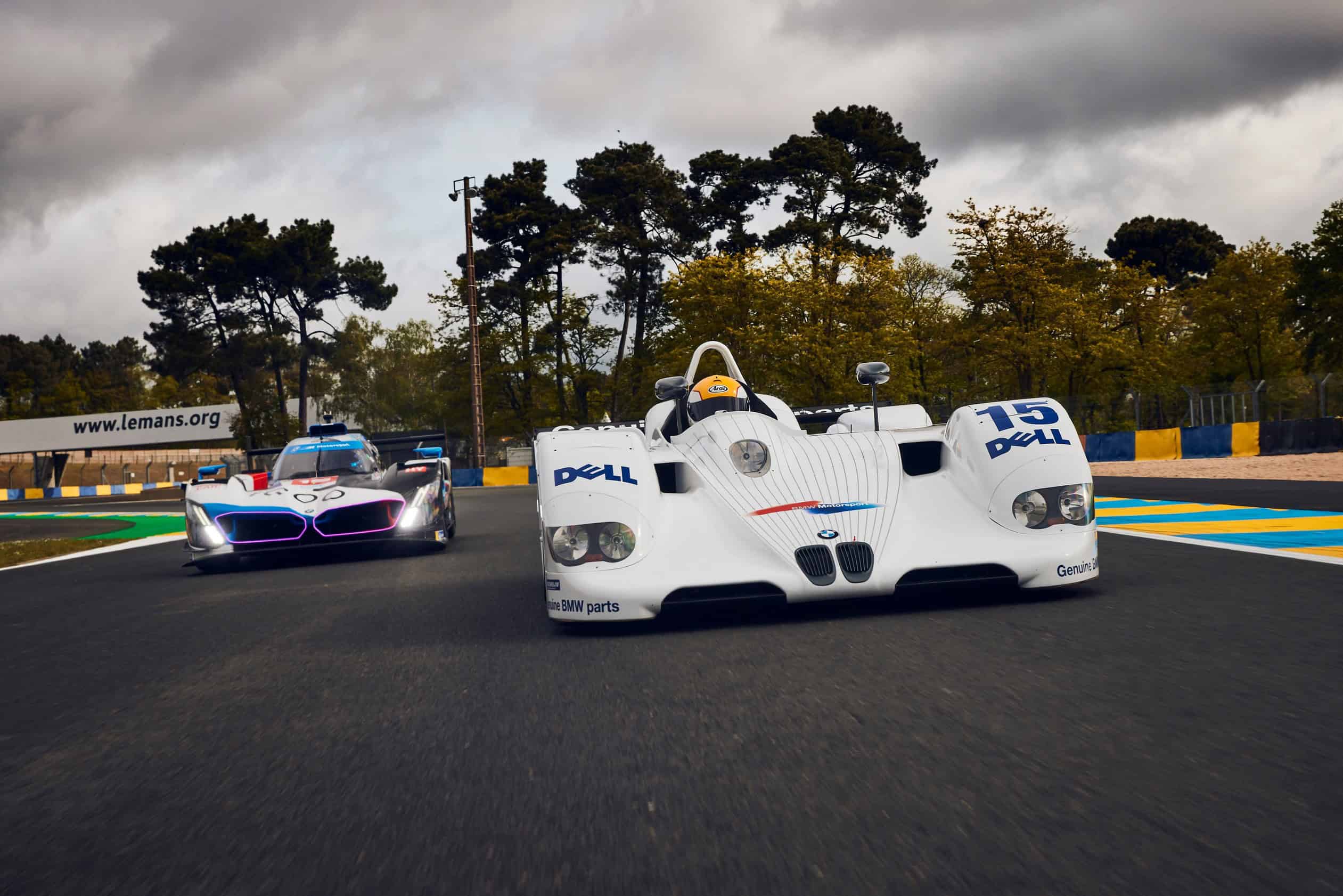 In the meantime, the two have shared the track for a photoshoot. The #15 V12 LMR was driven to victory in 1999 by Joachim Winkelhock, Pierluigi Martini, and Yannick Dalmas. The M Hybrid V8 also carries the #15 and will be piloted by Raffaele Marciello, Dries Vanthoor, and Marco Wittmann. The other electrified racer will be the #20 M Hybrid V8 Art Car designed by Julie Mehretu. Robin Frijns, René Rast, and Sheldon van der Linde will take turns behind the wheel.