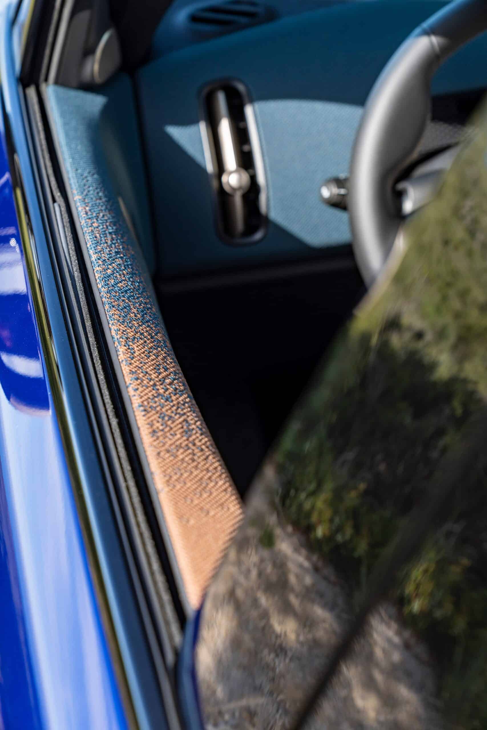 While the exterior may look like an evolution of the F60 generation, the cabin is completely different. Seen here with perforated synthetic leather in beige and dark petrol accents, the interior is a stark departure from the preceding model. MINI has taken the “less is more” approach by drastically cutting down the number of physical controls. In the name of minimalism, the driver’s display is also gone. You’ll be accessing most functions from that center OLED touchscreen measuring 9.4 inches.