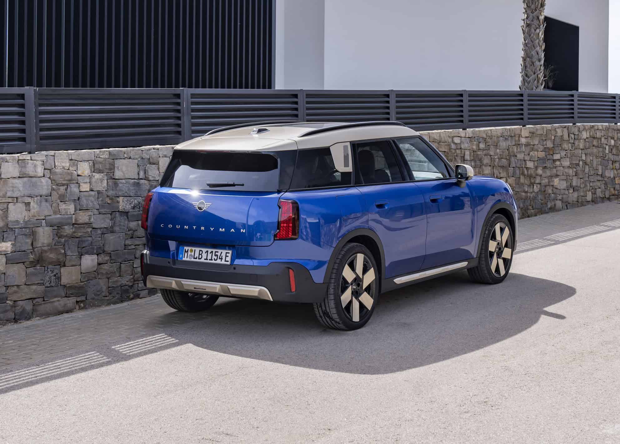 This Countryman E has been built in the Favoured Trim with Blazing Blue paint and optional Vibrant Silver accents. Because the latest generation has gotten so big, those massive 20-inch wheels with a windmill design don’t look out of place. Yes, you can get a MINI in 2024 with 20-inch alloys from the factory. If that’s too much, the Oxford-based brand also offers 17- to 19-inch wheels in multiple designs.