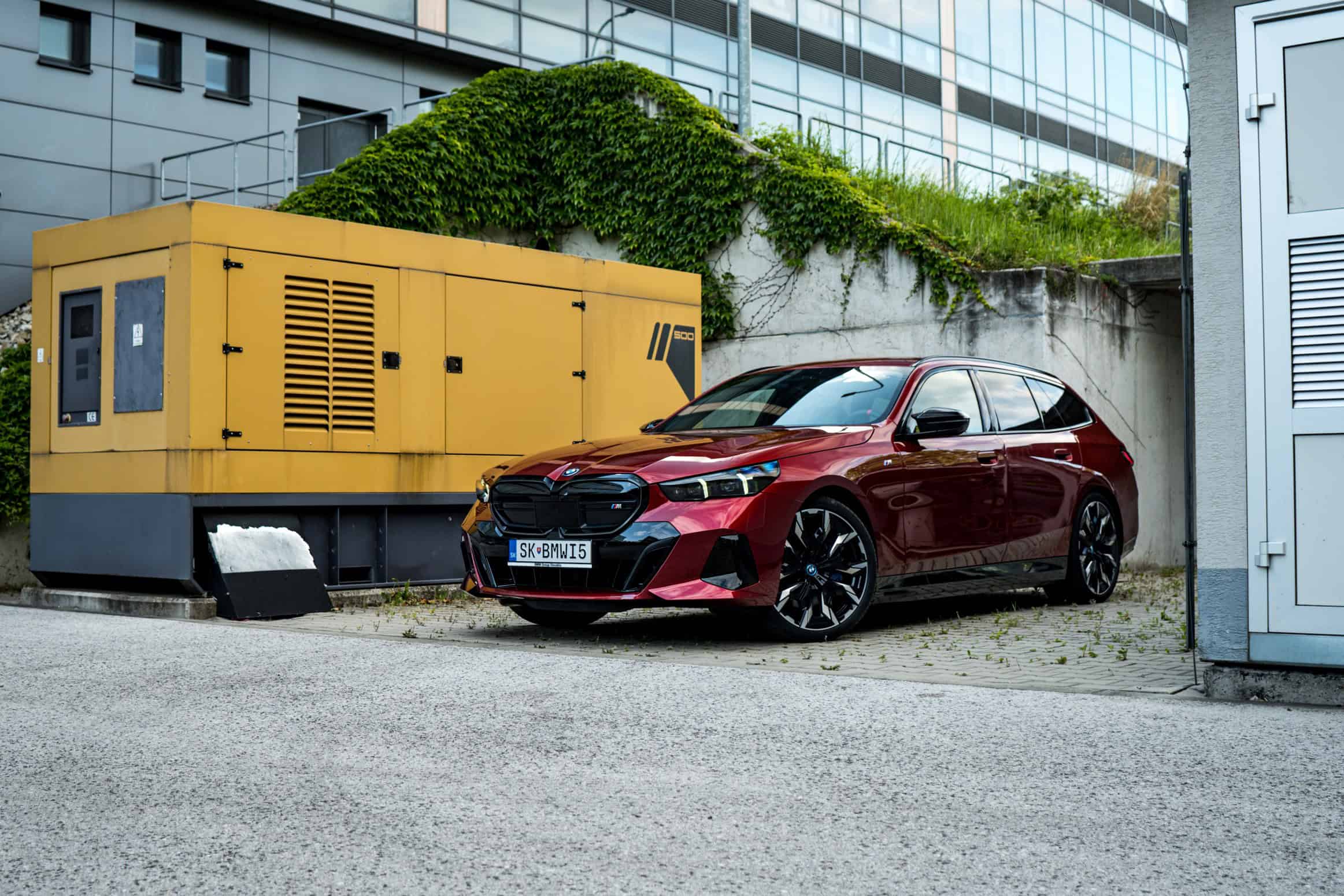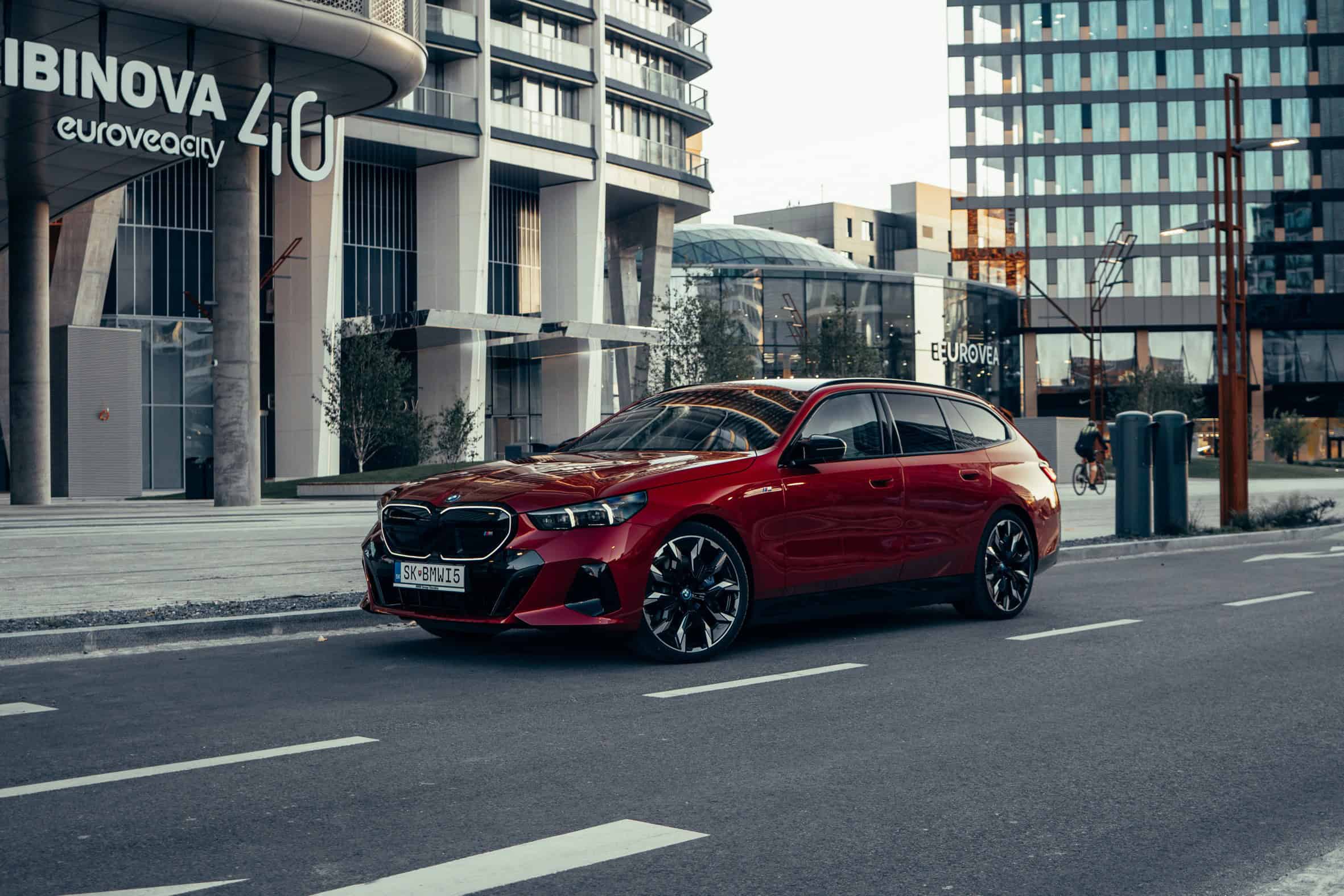 For the bigger 7 Series, the German luxury brand does offer an M760e as a plug-in hybrid with an inline-six. We haven’t heard anything about a hot PHEV being planned for the 5 Series. Consequently, the not-quite-M 5 Series is strictly an electric affair. BMW is showing it off as a more practical Touring with Fire Red paint. This color has a different name in North America where it’s called Vegas Red.