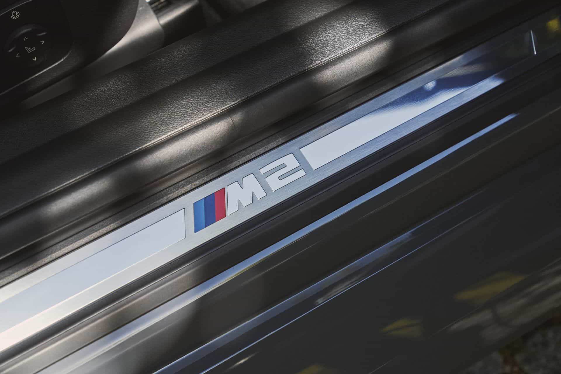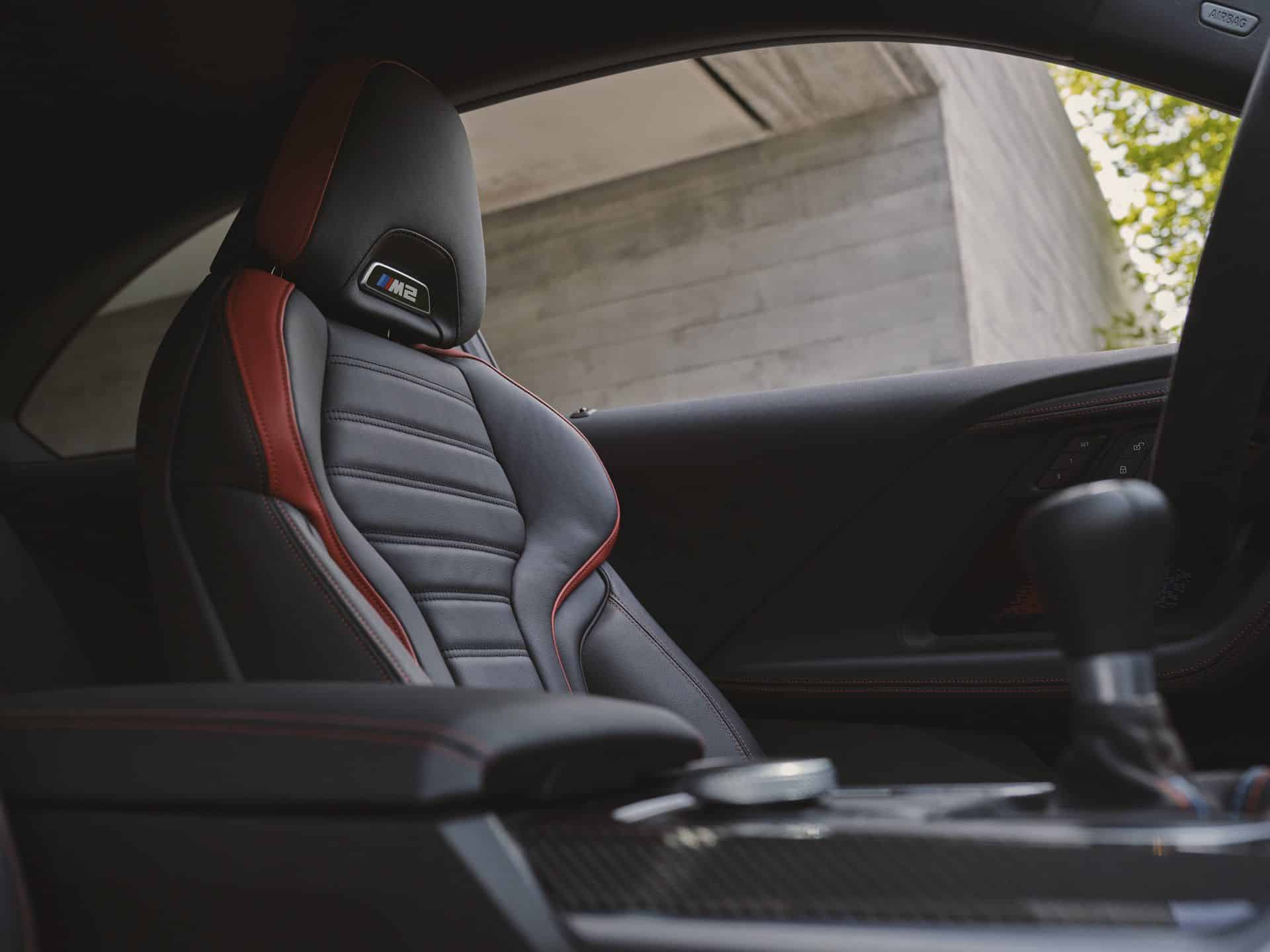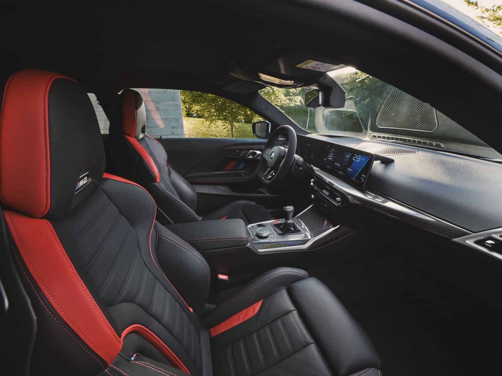 Predictably, the infotainment now runs on iDrive 8.5, while retaining the 14.9-inch touchscreen. The 12.3-inch digital instrument cluster remains unchanged. The latest US-spec M2 comes with standard M Fine Brushed Aluminium trim. Alternatively, you can opt for carbon fiber and Aluminium Rhombicle Anthracite. As standard, BMW sells the car with three-zone automatic AC, a Harman Kardon surround sound system, and ambient lighting.