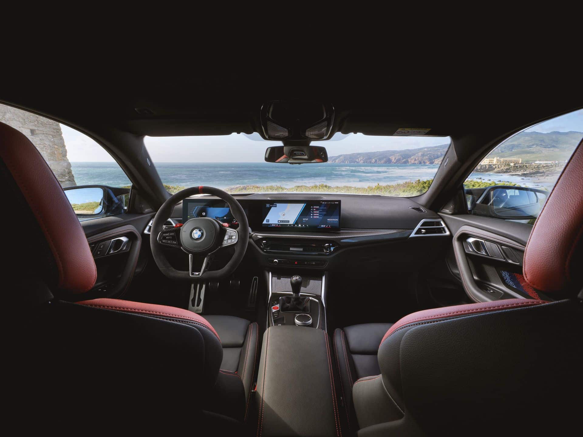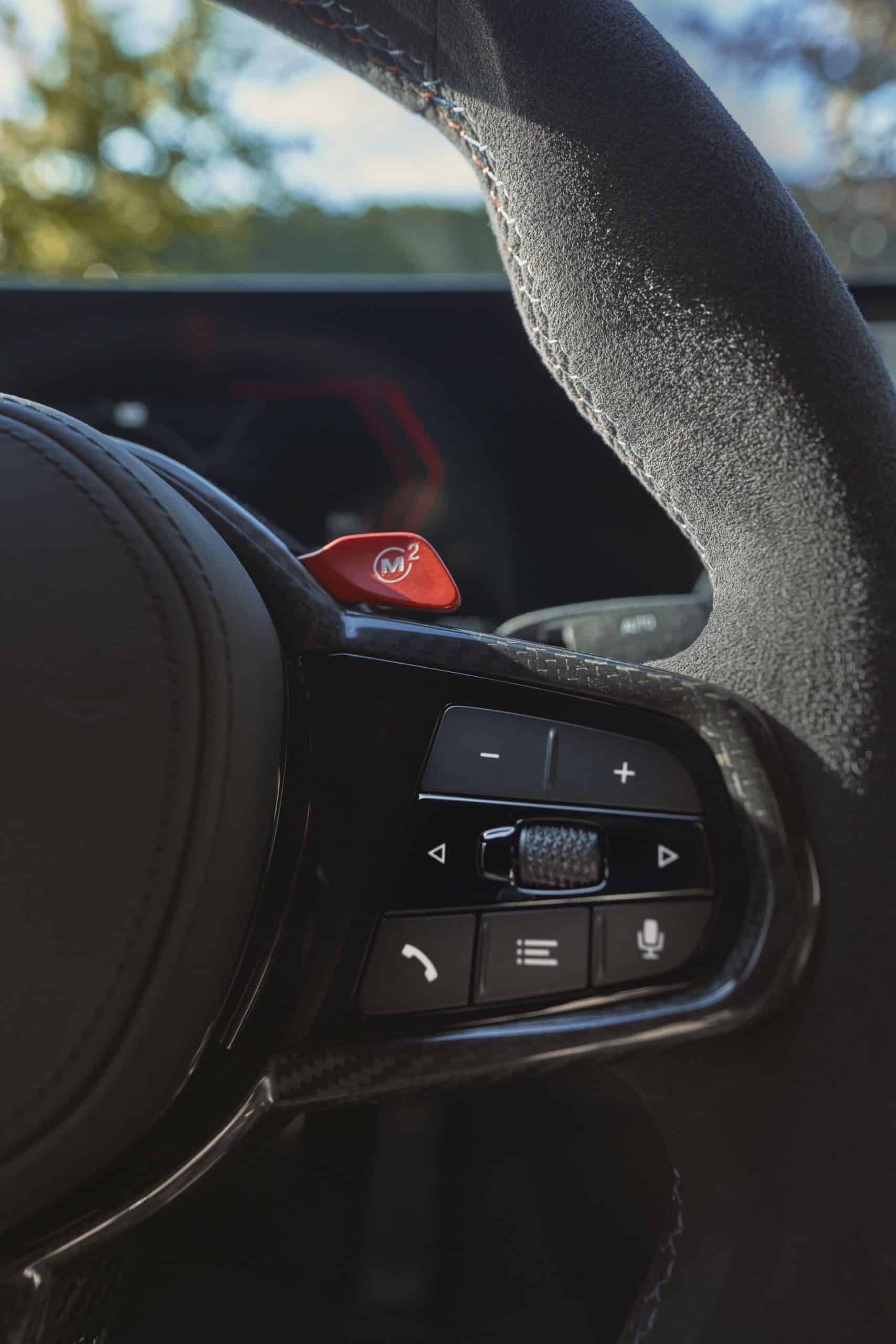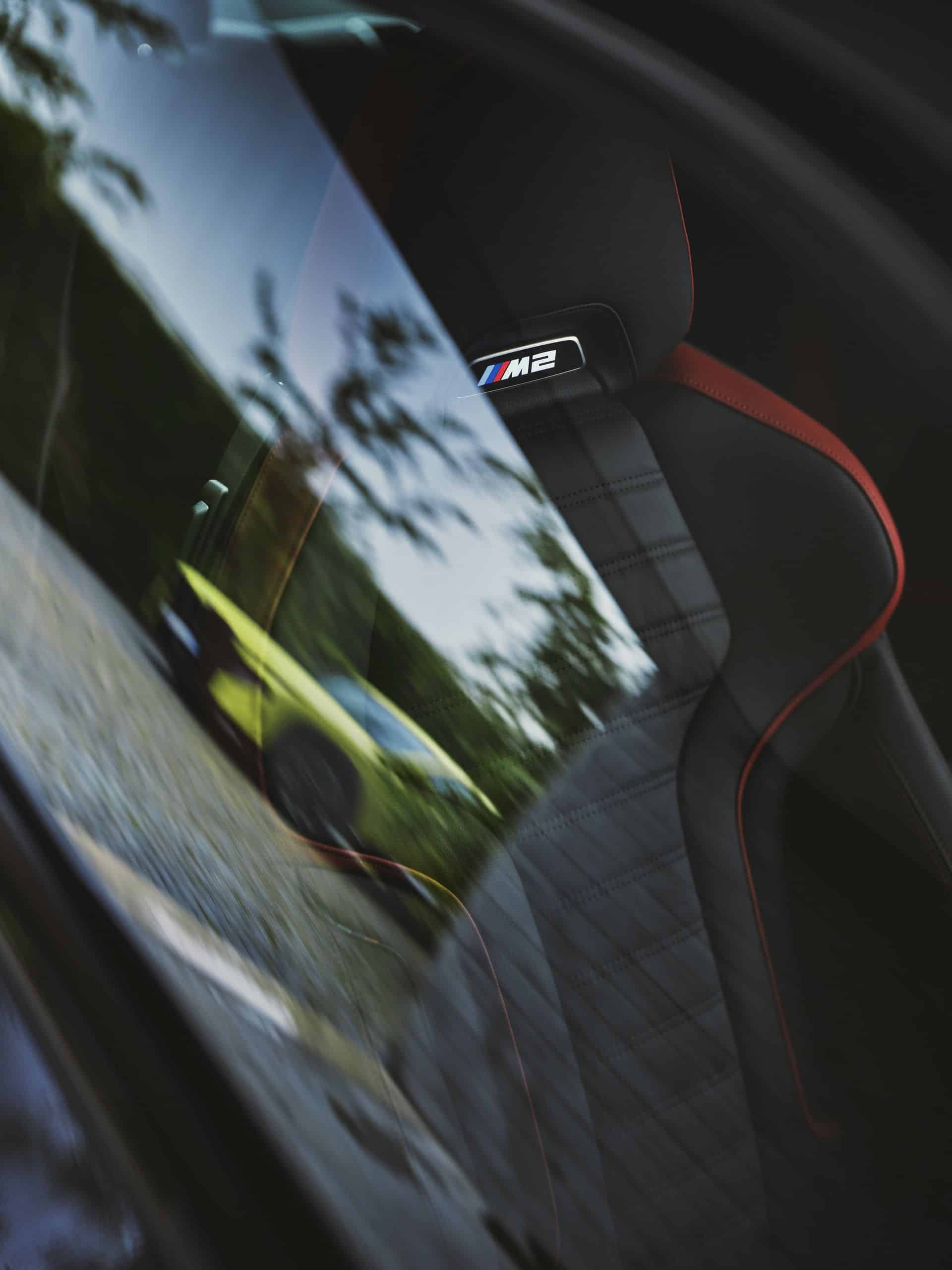 Predictably, the infotainment now runs on iDrive 8.5, while retaining the 14.9-inch touchscreen. The 12.3-inch digital instrument cluster remains unchanged. The latest US-spec M2 comes with standard M Fine Brushed Aluminium trim. Alternatively, you can opt for carbon fiber and Aluminium Rhombicle Anthracite. As standard, BMW sells the car with three-zone automatic AC, a Harman Kardon surround sound system, and ambient lighting.