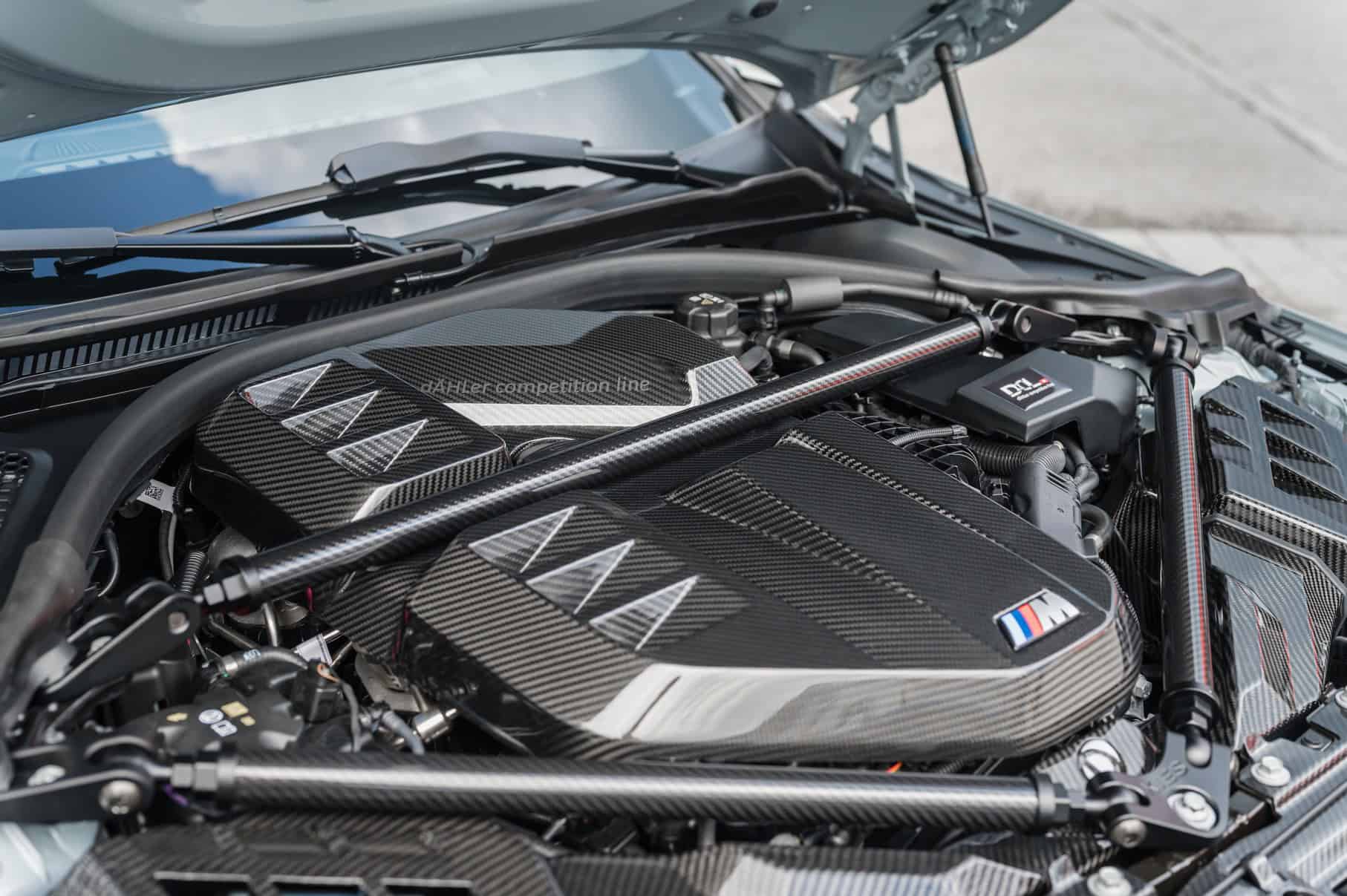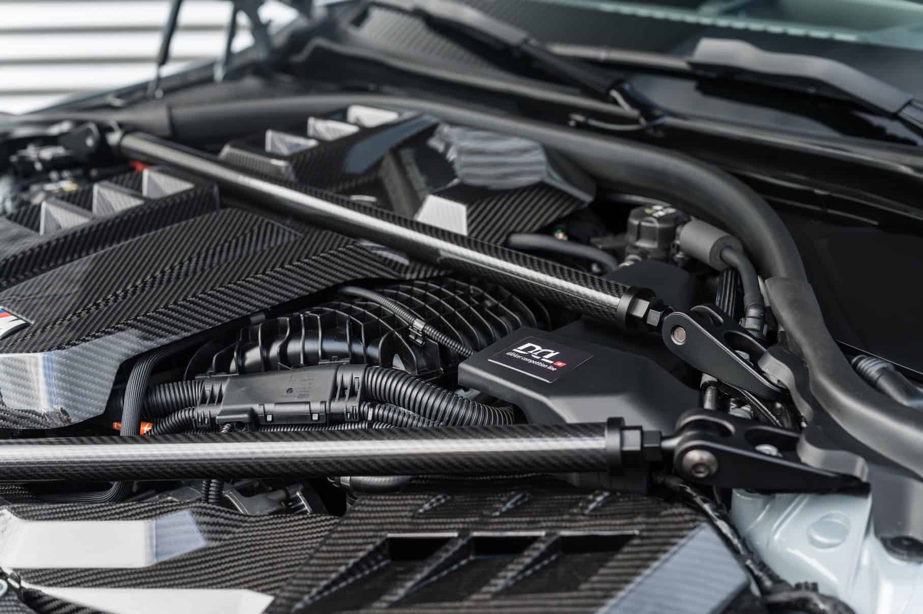 However, the pièce de résistance is unquestionably under the hood. Behind the carbon fiber engine cover is a modified S58 tuned to deliver 621 hp and 750 Nm (553 lb-ft) of torque. The twin-turbo 3.0-liter inline-six has received an Eventuri carbon fiber air intake, upgraded air filters, and a stainless-steel exhaust. The latter comes with quad 108-mm tips featuring black ceramic coating and flaps to alter the soundtrack on the fly.