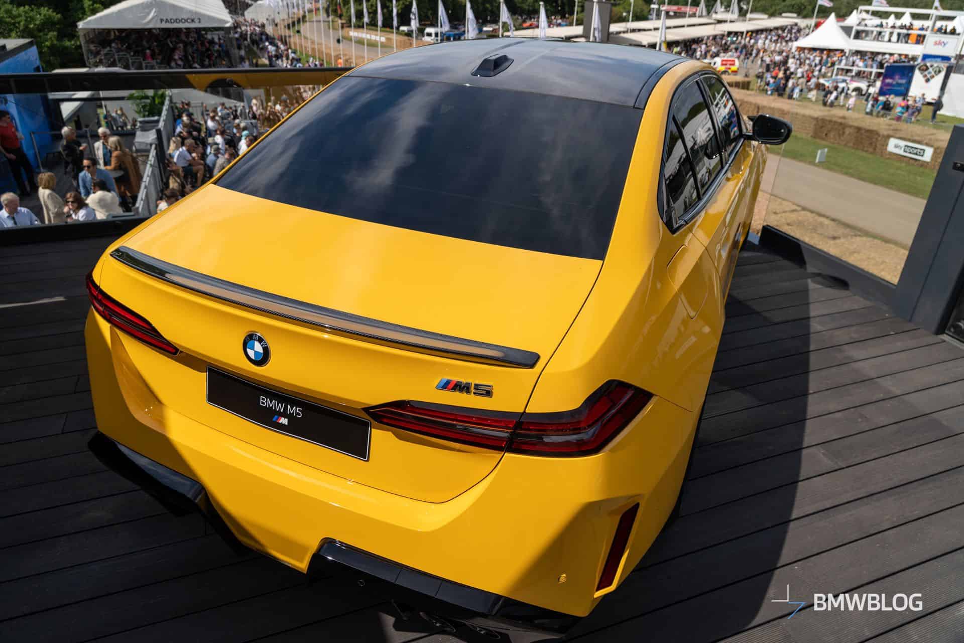 This stealthy M5 isn’t the only one BMW is showing off at the Goodwood Festival of Speed. We’ve already got up close and personal with another car painted in Speed Yellow. In addition, there’s a Frozen Deep Grey car flaunting a matte finish from the Individual catalog. This Carbon Black example is the only one without the optional carbon roof.