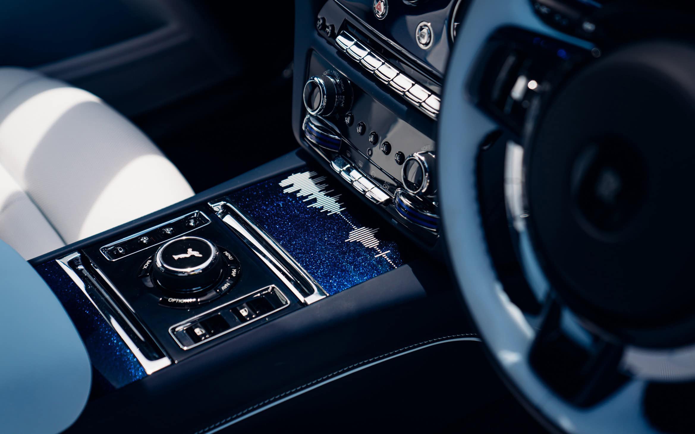 RR’s first electric model, Spectre, also has a bi-color finish by mixing Peony Pearl with Black Diamond. The stately coupe sits on gargantuan 23-inch wheels with body-matching center caps. Inside, the customer opted for Peony Pink and Arctic White colors. The Rolls-Royce of EVs not only has the usual Starlight Headliner but also Starlight Doors with no fewer than 4,796 illuminated stars.