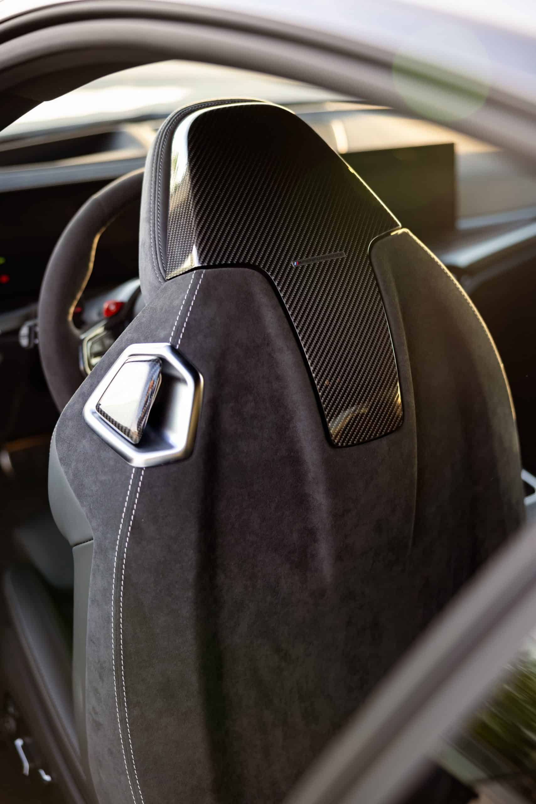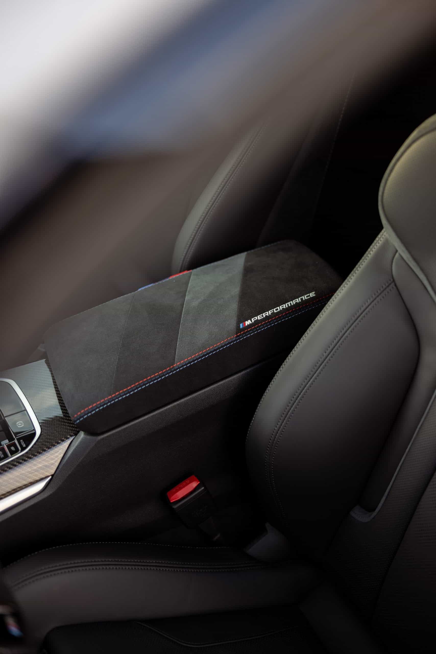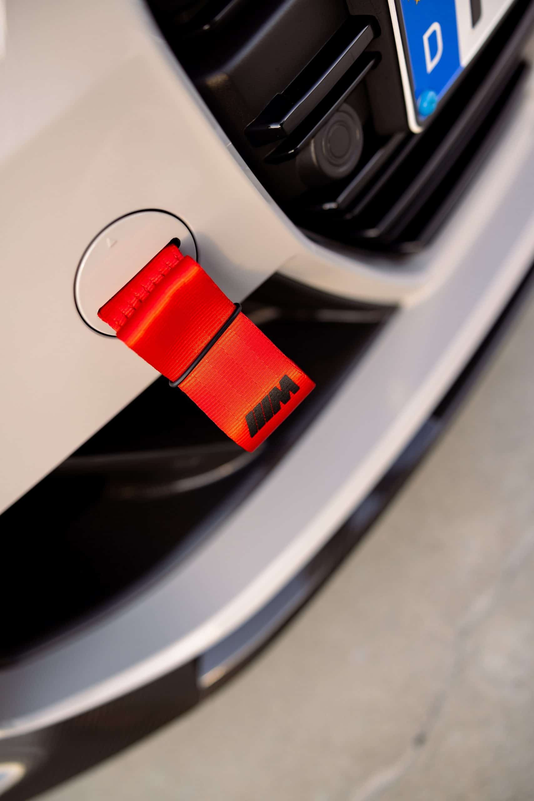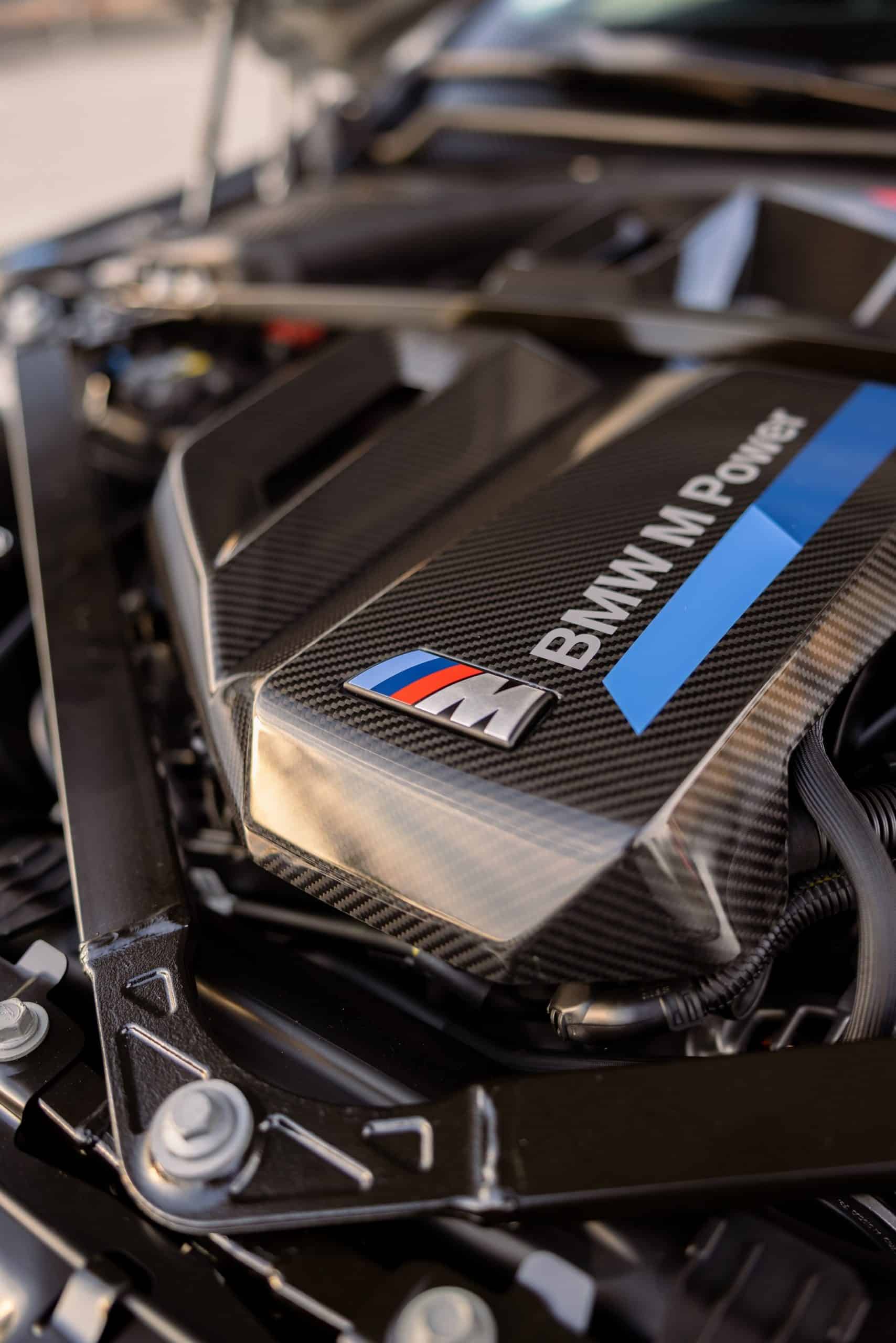Carbon fiber is extensively used since it covers the shark fin antenna, fuel filler cap, side gills, and front canards. Rounding off the changes on the outside is the red tow strap with M branding, of course. Pop the hood and there’s a carbon engine cover with prominent BMW M Power badging like in the old days. As if that wasn’t enough, a large M logo is proudly displayed as well.
