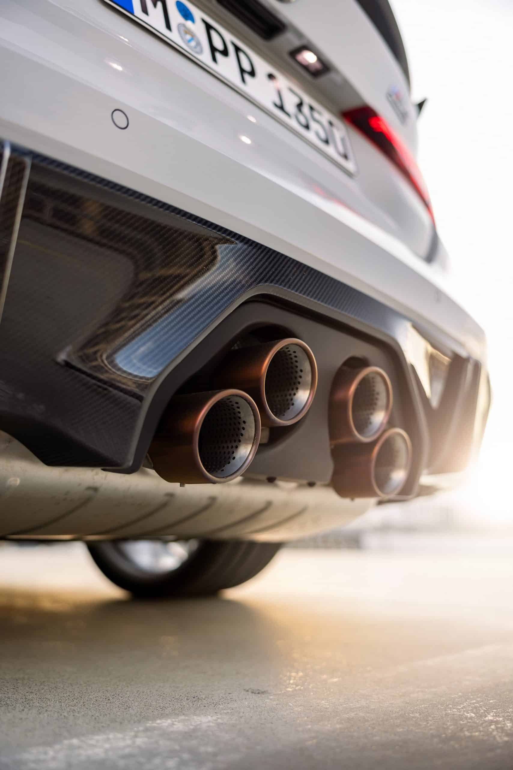 It’s loaded to the brim with optional items you won’t find in the online configurator. From the carbon fiber body kit to the wheels, this M4 is a spare-no-expense build. By far the most striking upgrade is at the back where the stacked exhaust tips are mounted in the middle of the diffuser. BMW offers this hardware on the M4 Convertible as well. In addition, you can have it on the M2 and M3 models.