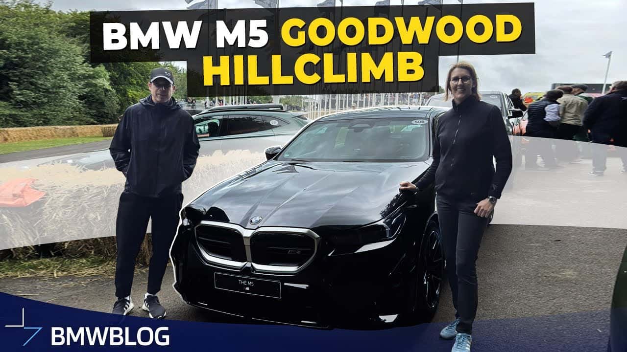 BMWBLOG had the opportunity to ride shotgun in the new M5 this weekend at the Goodwood Festival of Speed. We were in great company as behind the wheel was G90 product manager Daniela Schmid, a Nürburgring 24 Hour class winner. As for the car, it’s a Carbon Black example with the standard sunroof and optional Kyalami Orange seats.