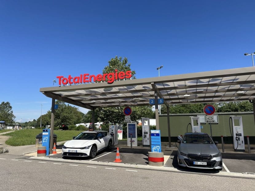 The A43 highway on the French side is faster than German highways with fewer roadworks. The switch to France highlights better electromobility infrastructure. Clean, bright, and well-maintained fast chargers are at every service station. The i5 charges efficiently while the driver snacks or relaxes. However, the on-board computer never shows a range of 400 km or more. At the hotel stop in Clermont-Ferrand, the 22 kW charging option at the hotel charges 67 kWh in three hours and eleven minutes for 40.04 euros, providing only 229 miles / 367 km range.
