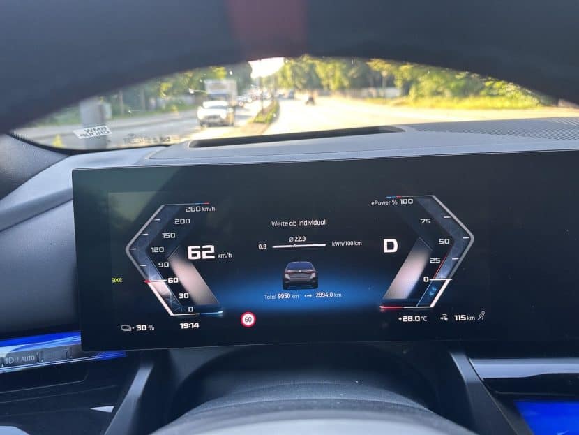 The multi-day European tour promises extensive insights into everyday use and long-distance suitability, including cities like Innsbruck, Bolzano, Brescia, Milan, Turin, Grenoble, Clermont-Ferrand, Tour, Le Mans, Paris, Strasbourg, and Stuttgart, starting in Munich. Nearly 2,200 miles / 3,500 kilometers where the electric Bavarian was expected to shine. However, the first disappointment is that the battery, 99% charged, does not show a range over 250 miles / 400 kilometers. The 81.2 kWh battery pack promises a range of 382 kilometers, but this is mediocre for a luxury sedan, especially for a customer accustomed to refueling every 440 miles / 700 kilometers with a BMW 540d xDrive.