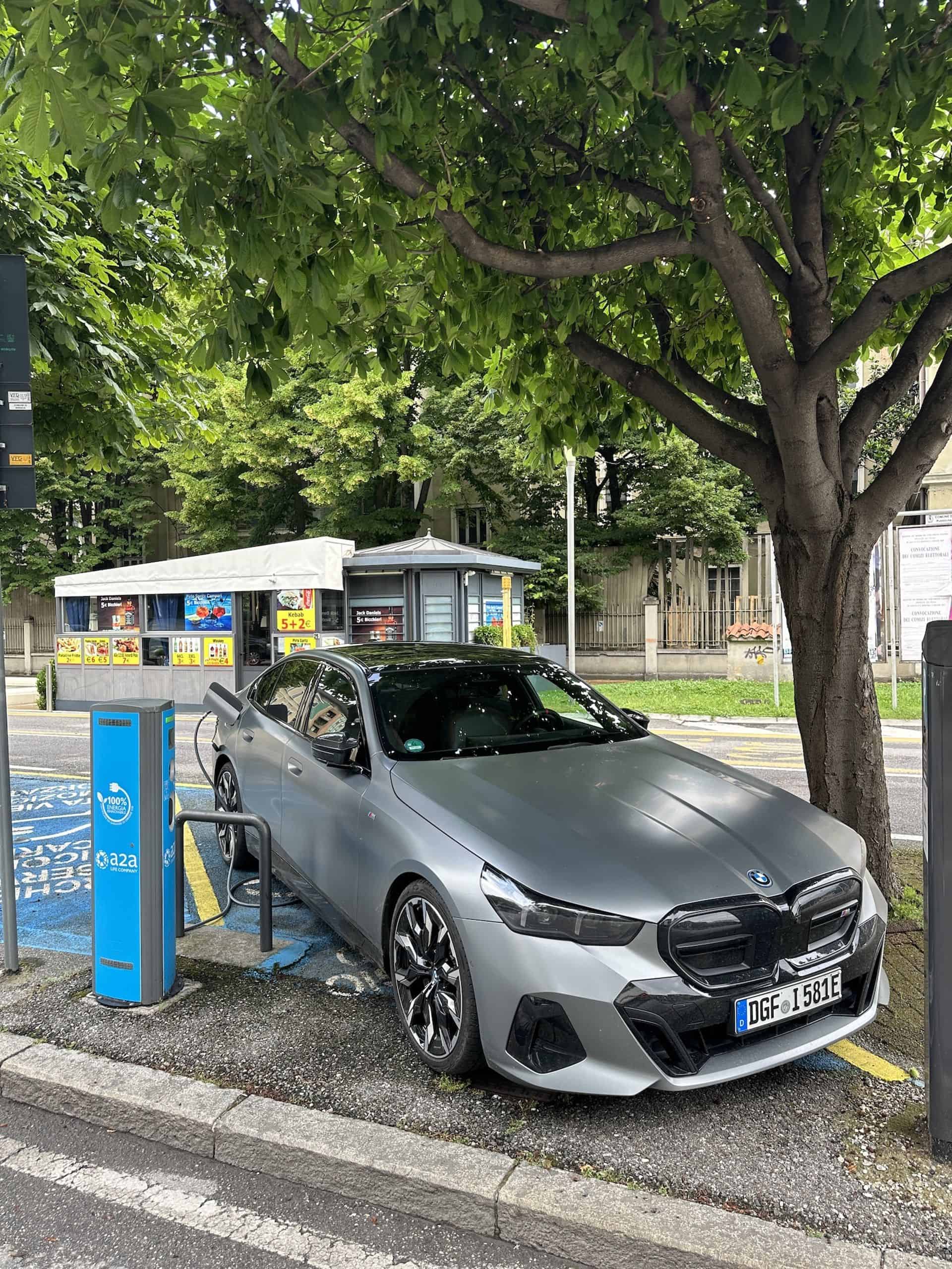 Heading south towards northern Italy, the fast drive on the A99 and A8 towards Innsbruck, combined with a slight energy thirst, necessitates the first charging stop near the German-Austrian border in Kiefersfelden, with the range barely over 200 km. The 600 hp all-wheel drive was far from its top speed, limited early at 143 mph / 230 km/h. Recharging occurs at just under 180 kW, still short of the 205 kW the 400-volt technology allows. BMW models currently lag behind competitors offering 270, 310, or even 400 kW thanks to 800 or 900-volt systems. Nevertheless, the i5’s charging capacity remains high for a long time, and after 30.6 kWh for 24.18 euros, the journey continues towards Brescia. The charging infrastructure in northern Italy is reliable, especially outside vacation periods. In Affi, southeast of Lake Garda, another 75 kWh are refilled after the range drops below ten percent, costing 59.25 euros.