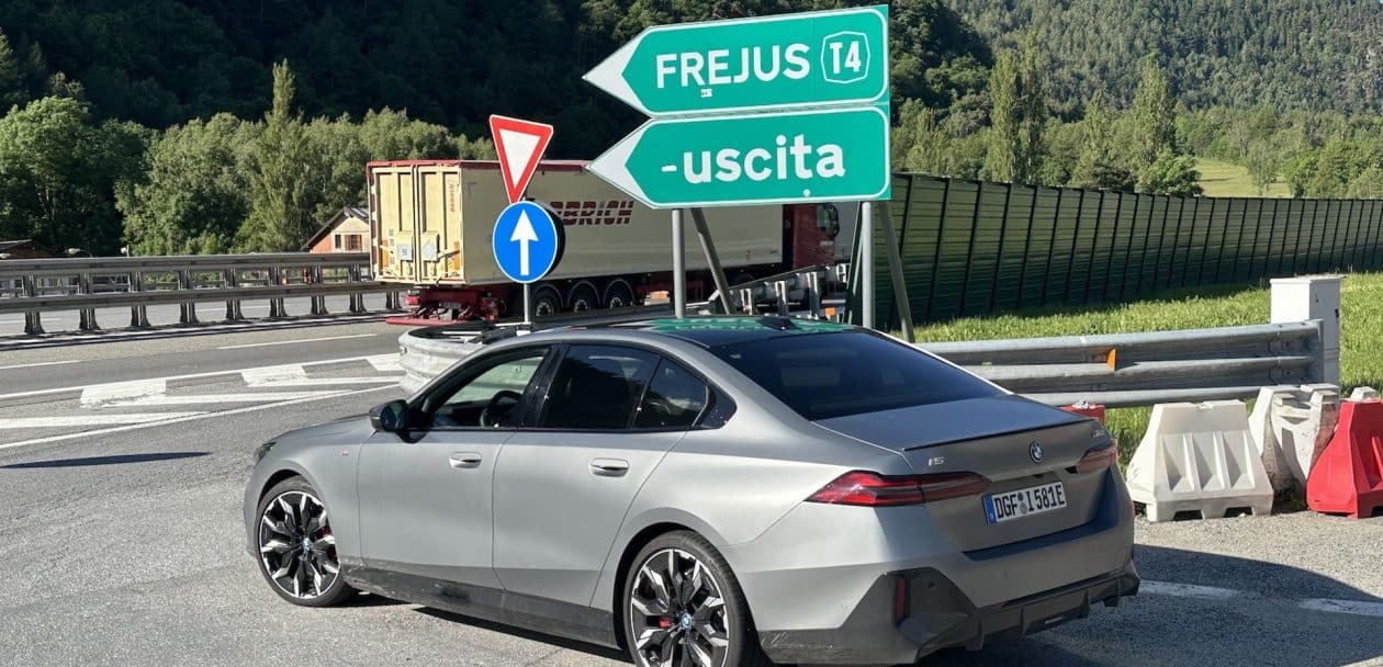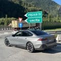 The BMW i5 M60 excels on long journeys. The seats are top-notch, space is ample, and the noise level is low even without insulating glass. The two displays are sharp but could be larger compared to competitors, and there’s no passenger screen. On country roads, the nearly 2.4-ton all-wheel-drive vehicle performs admirably. The precise steering and low center of gravity are pleasing in tight bends, and the brakes transition smoothly from recuperation to disc brakes. Navigation, handling, and comfort in city centers like Milan and Turin are excellent. The car refuels a few kilowatts of power here and there before heading over the Alps towards France. The customs officer at the border tunnel inspects the gray i5 extensively but allows passage.