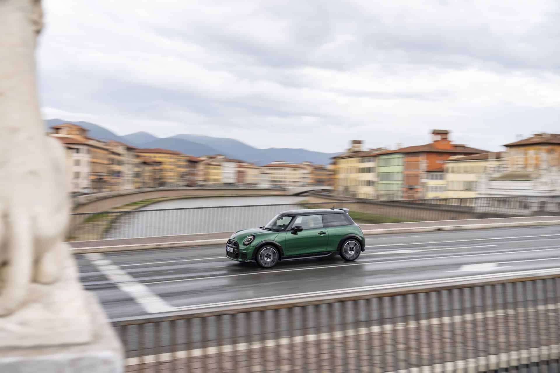 Additional highlights include a contrasting roof and mirror caps in black, along with JCW brake calipers in black adorned with the JCW badge. Exclusive rim designs in sizes of 17 inches and 18 inches further reinforce the unique appearance of the MINI Cooper S in JCW Trim. Naturally, inside there aren’t many changes from the base model. A high-resolution 9.4″ OLED display brings to BMW Group a new way of displaying information on a round screen.