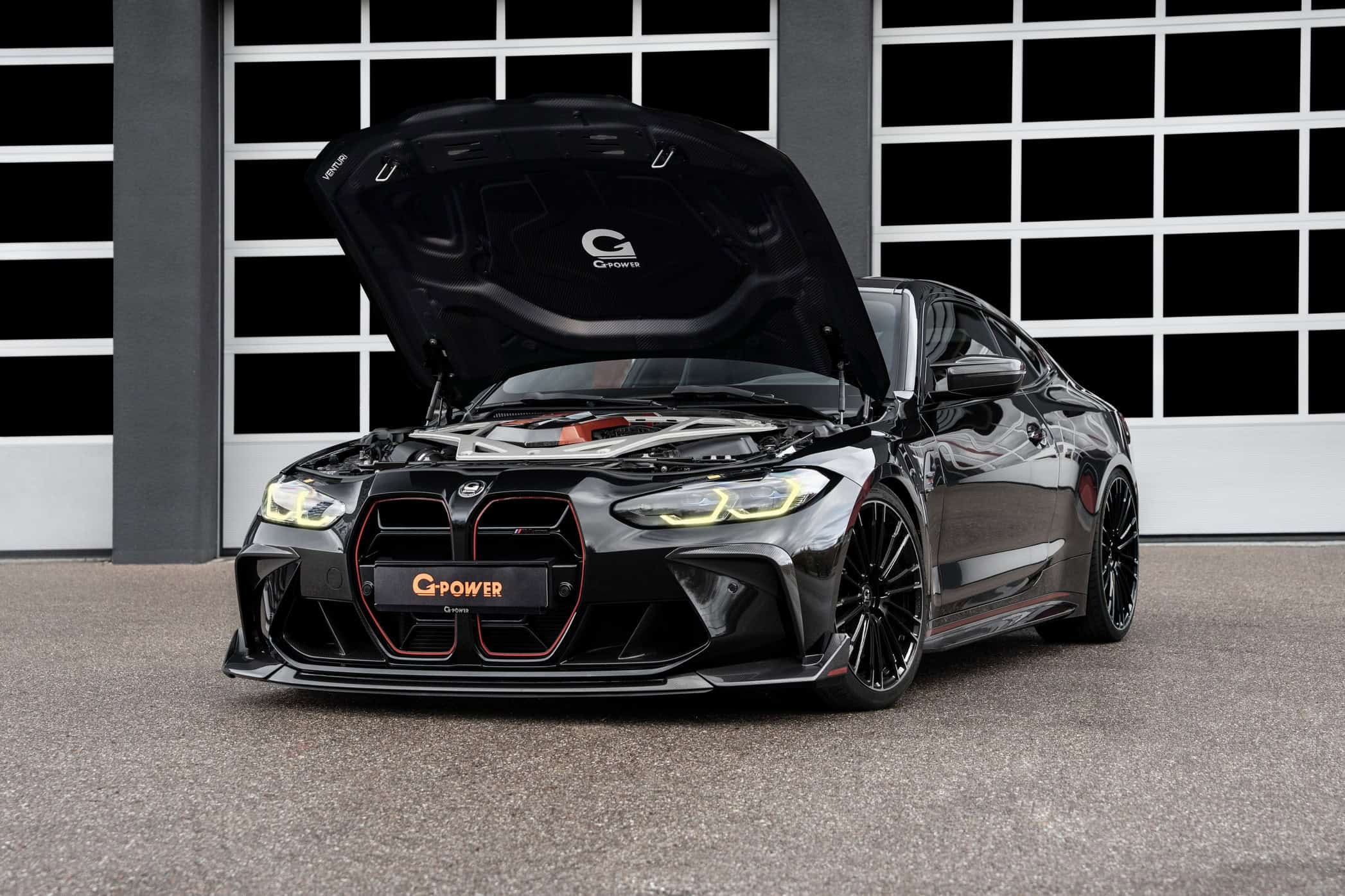 The tuner has obtained the extra oomph via a software upgrade and a different exhaust. Elsewhere, there’s a menacing carbon fiber hood from Venturi with a beefy bulge and several slats for extra cooling. G-Power swapped the original M4 CSL’s wheels for its own forged set to shave off weight. The tuner offers these goodies as either a whole package or individual items.